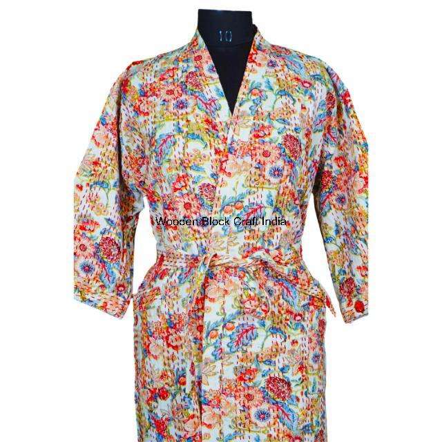 เสื้อแจ็กเก็ตผ้าคอตตอนออร์แกนิคสำหรับผู้หญิงแขนสามส่วนพิมพ์ลายดอกไม้งานฝีมือบล็อคไม้สไตล์อินเดีย100%