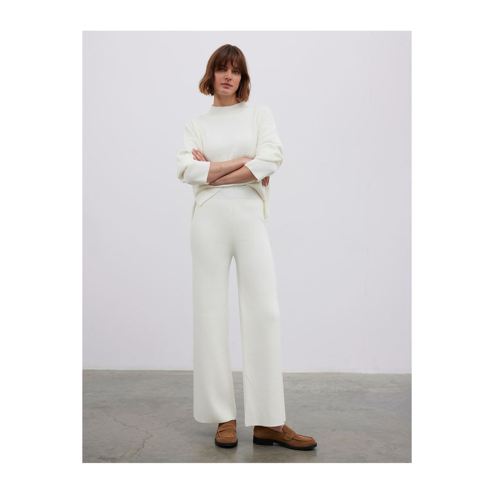 กางเกงขายาวผ้าผสมขนสัตว์ เอวสูง ทรงกางเกงป้องกันขนร่วง