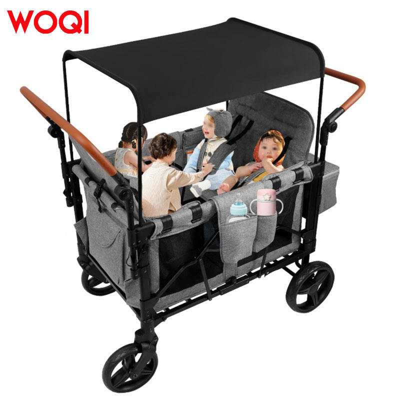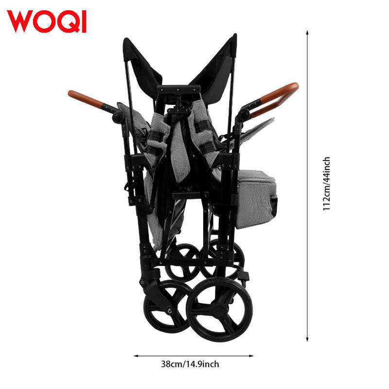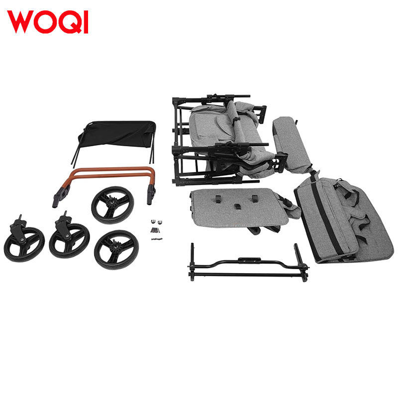 รถเข็นเด็กพับได้ WOQI ขนาด 90x63x112 ซม. โครงโลหะ สีเทา สำหรับทุกสภาพพื้นผิว พร้อมกระเป๋าเก็บของและที่จับปรับได้