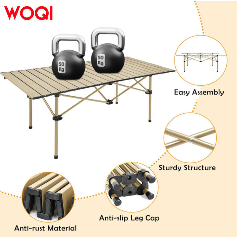 โต๊ะพับแคมป์ปิ้ง WOQI สำหรับ 6 คน โต๊ะอลูมิเนียมทรงสี่เหลี่ยมผืนผ้าสำหรับกิจกรรมกลางแจ้ง พกพาสะดวก พร้อมปลอกขาป้องกันลื่น