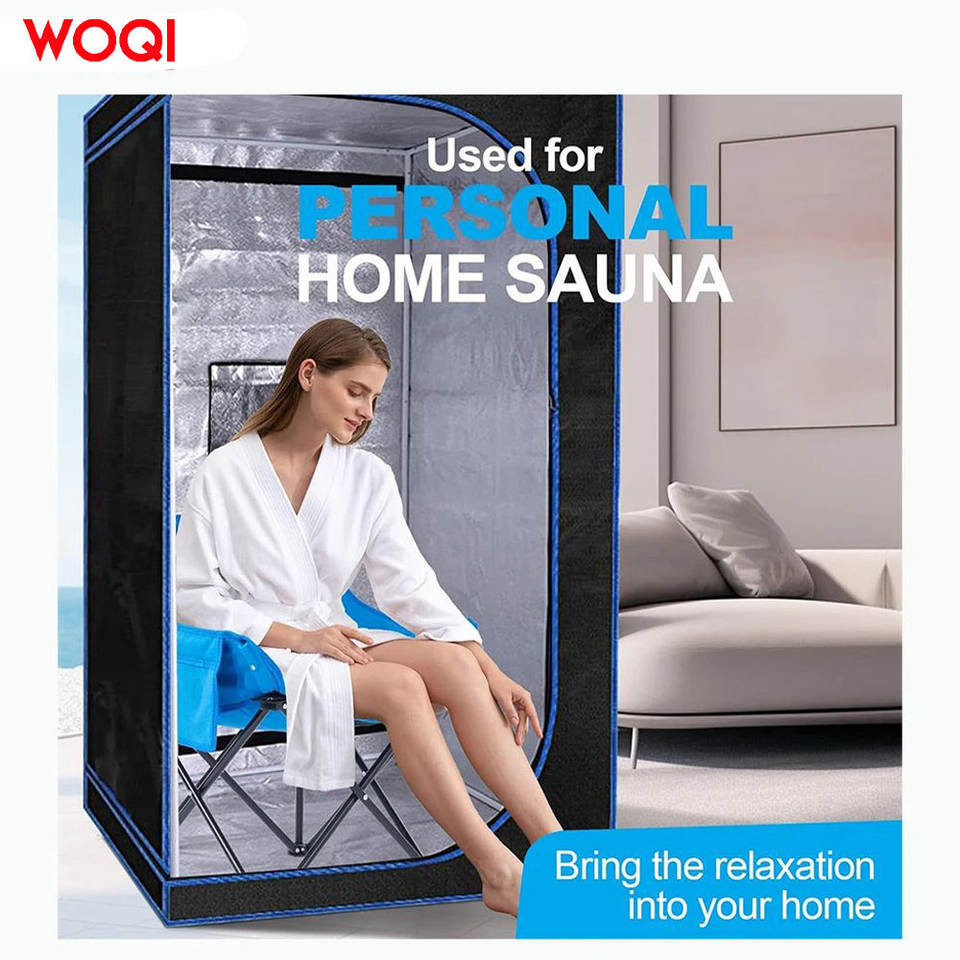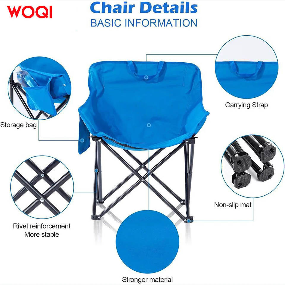 เก้าอี้ซาวน่าพับได้ WOQI สีฟ้า ผ้า Oxford พกพาสะดวก มีช่องเก็บของ สูง 25.9 นิ้ว สำหรับการเดินทางกลางแจ้ง