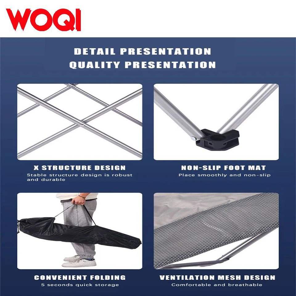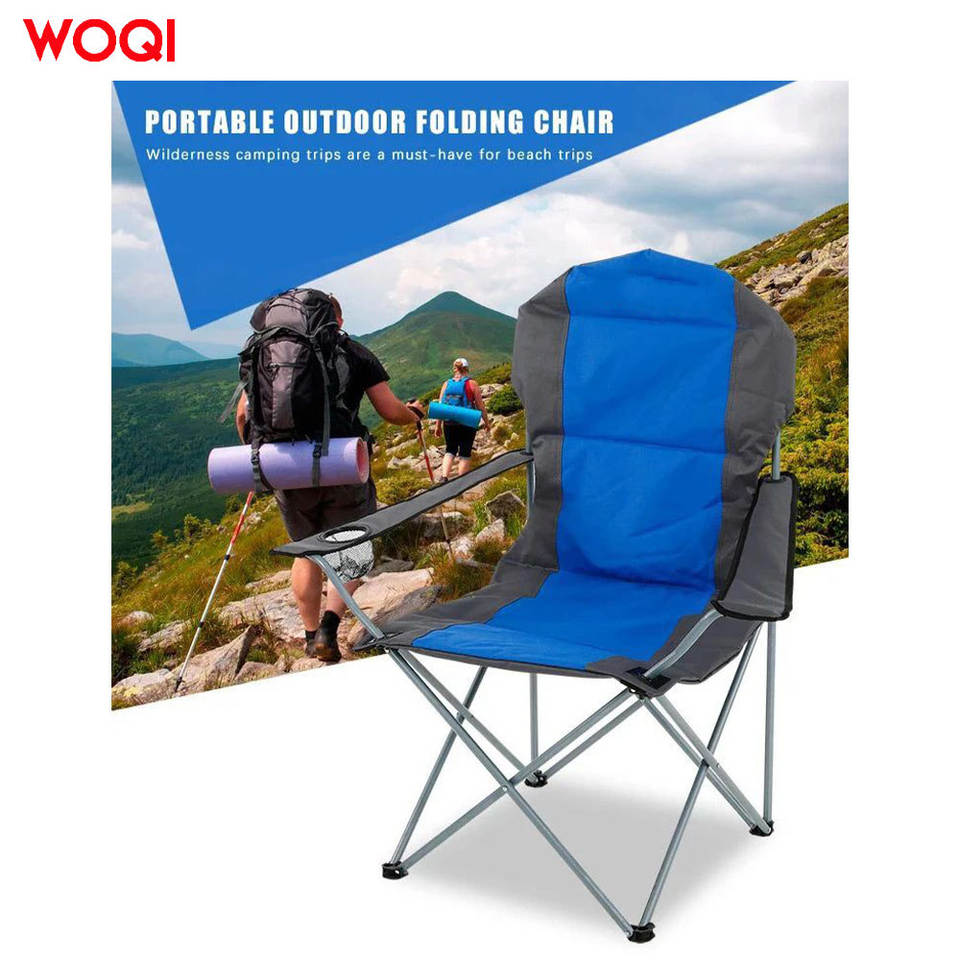 เก้าอี้พับพกพา WOQI สำหรับตั้งแคมป์กลางแจ้ง เก้าอี้สนามโครงอะลูมิเนียม ผ้าอ๊อกซ์ฟอร์ด พร้อมที่วางแก้ว
