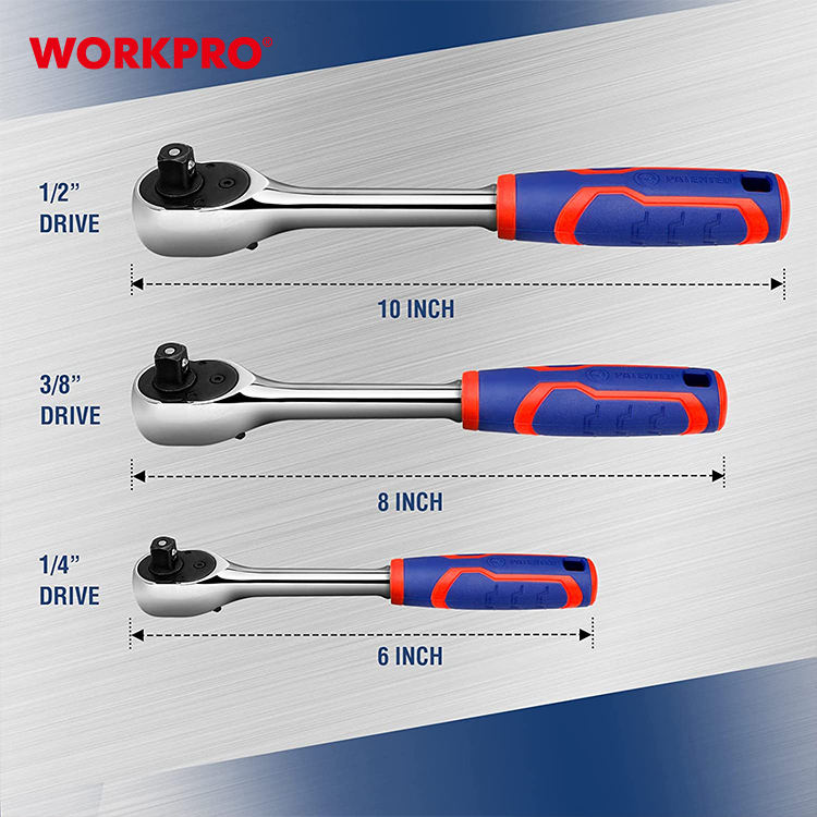 ประแจบล็อก WORKPRO ขนาด 1/2 นิ้ว x 8 นิ้ว แบบปลดเร็ว 72 ฟัน พร้อมด้ามจับโค้ง
