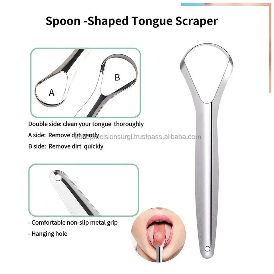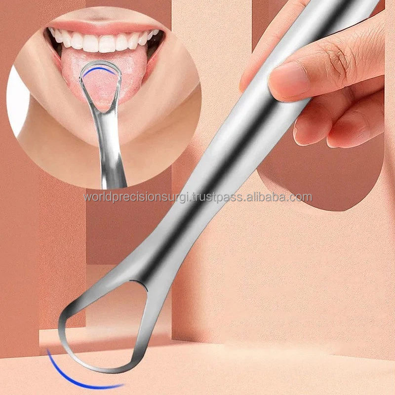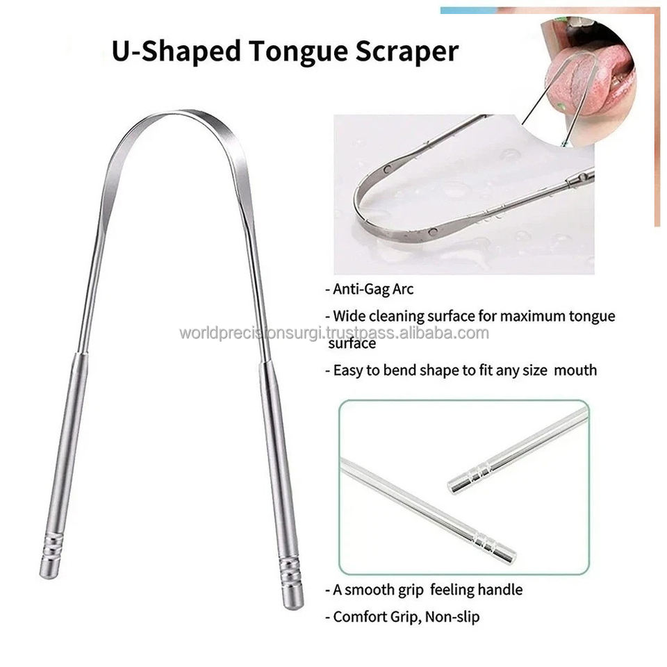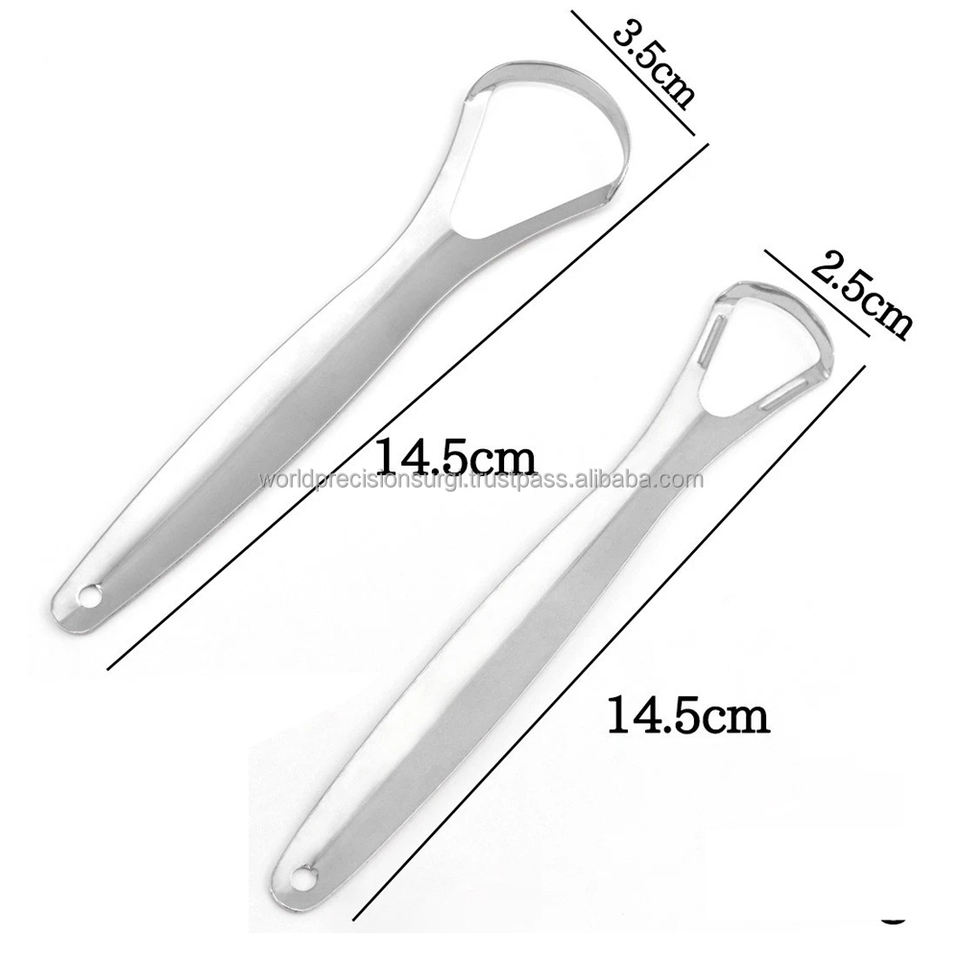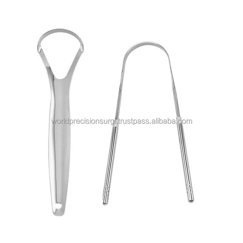 ชุดที่ขูดลิ้นสแตนเลสสตีลแบบใช้ซ้ำได้ WORLD PRECISION SURGICAL รูปทรงช้อนรูปตัวยู 2 แบบ เพื่อลมหายใจสดชื่นและสุขภาพช่องปาก