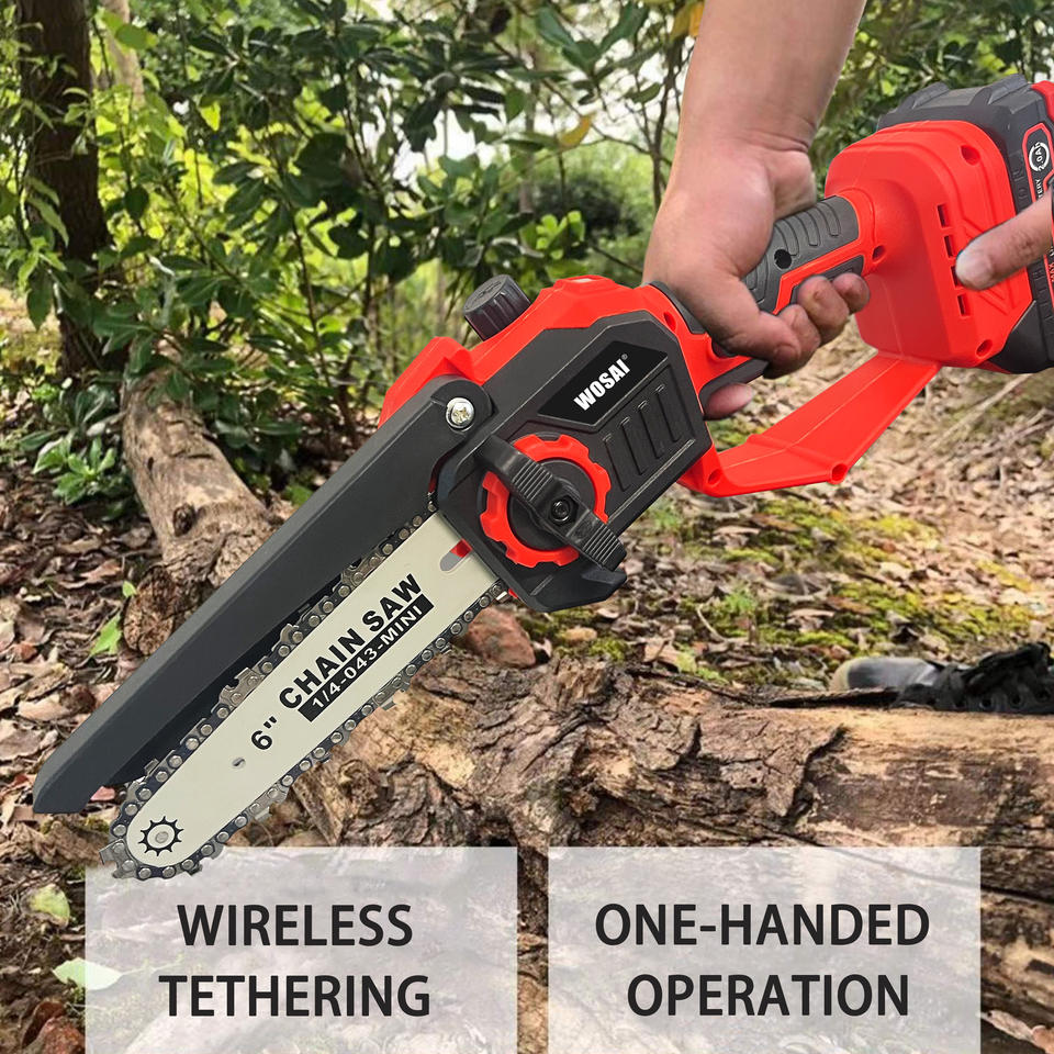 WOSAI เลื่อยโซ่ยนต์ไร้สายขนาดเล็ก 4 นิ้ว 600 วัตต์ แบบชาร์จไฟได้ สำหรับงานป่าไม้ เลื่อยไม้แบบมือเดียว ราคา