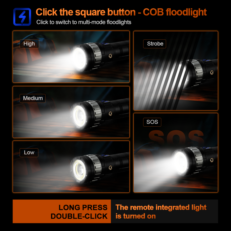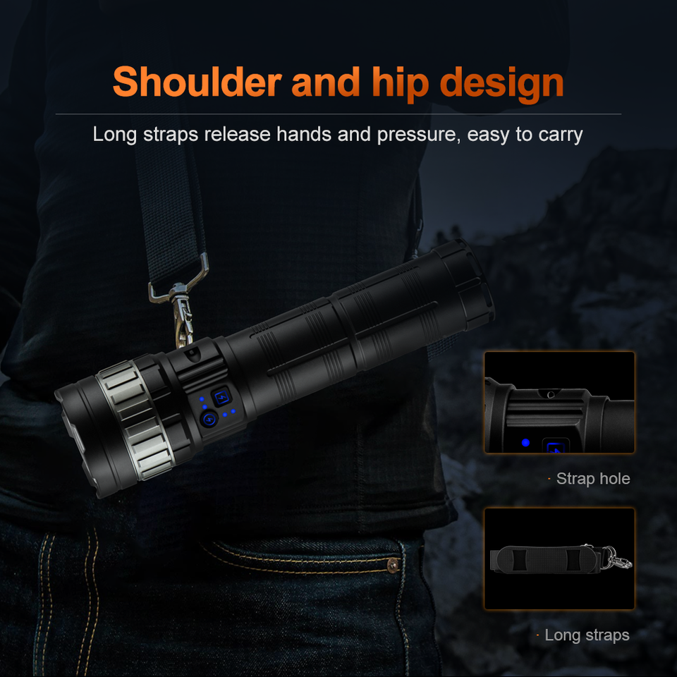 WOSEN 70W สีขาวไฟ LED สว่างพิเศษกันน้ำ IP66 ไฟฉายยุทธวิธี 1000M + ระยะลำแสงปรับโฟกัสได้แบบชาร์จไฟได้