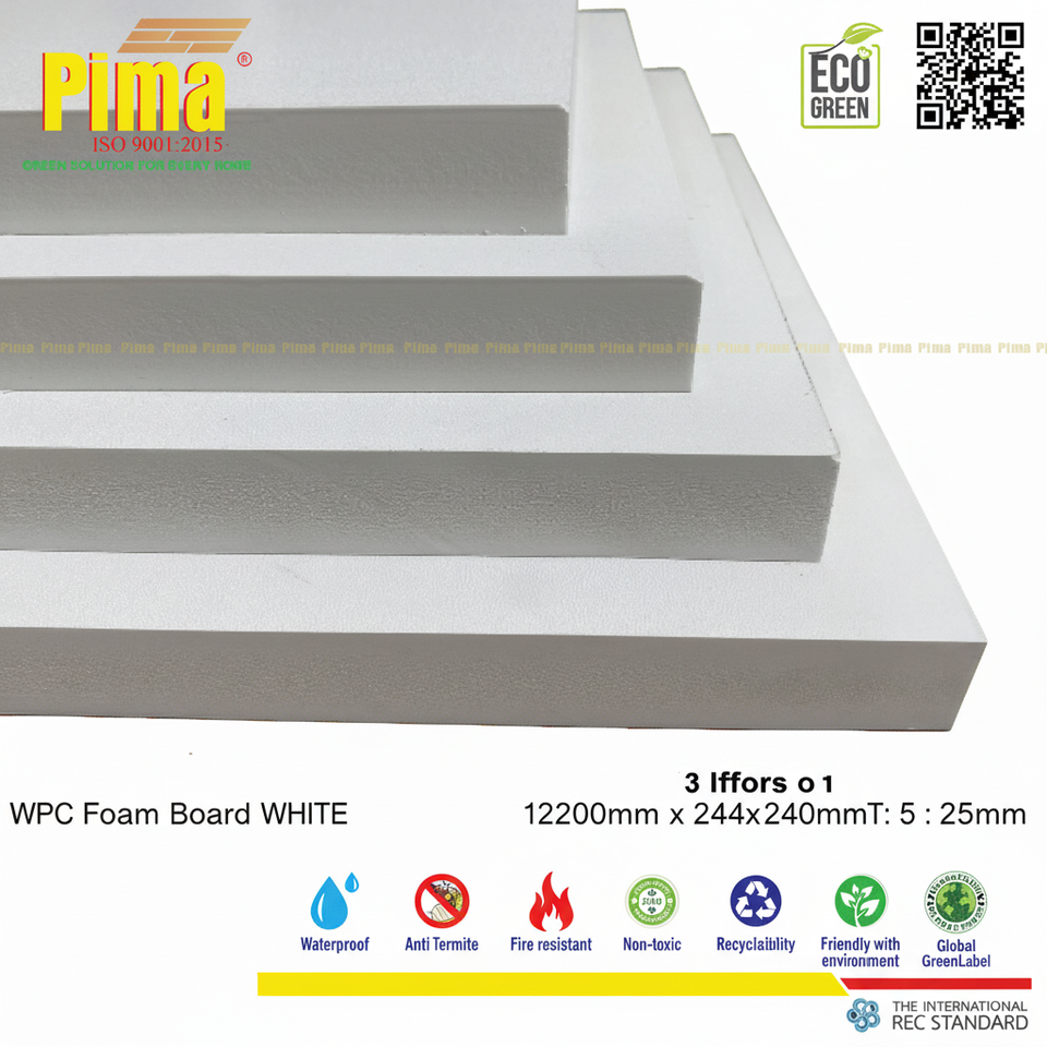 WPC PVC Foam Board Sheet 5mm Thickness 0.6 G/cm3 Density Celuka Anti-Termitic White Furniture Foam