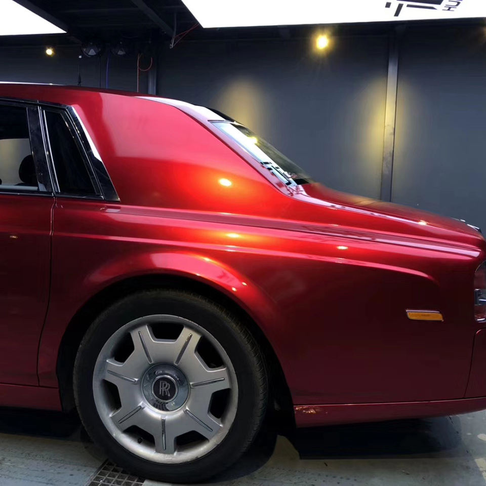Wrapmaster 1.52*17ม. แรปโลหะเคลือบเงาสำหรับสัตว์เลี้ยงไวนิลมีกาวในตัวสีแดงจิตวิญญาณสำหรับตกแต่งรถยนต์เปลี่ยนสีได้