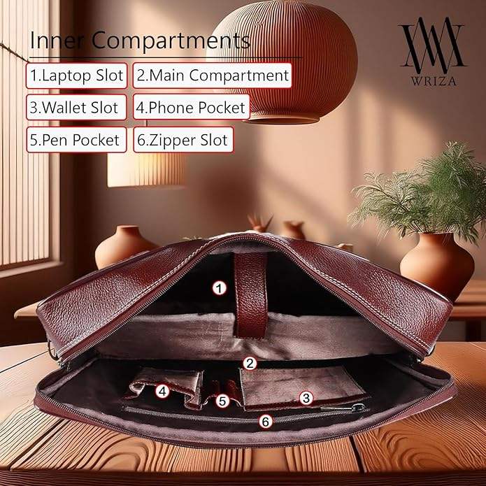 Wriza กระเป๋าเป้หนังแท้สำหรับผู้ชาย, กระเป๋าเป้ใส่แล็ปท็อปหนังแท้สีน้ำตาลสามารถปรับสายได้หลายช่องขนาดใหญ่กันน้ำขนาดปกติ