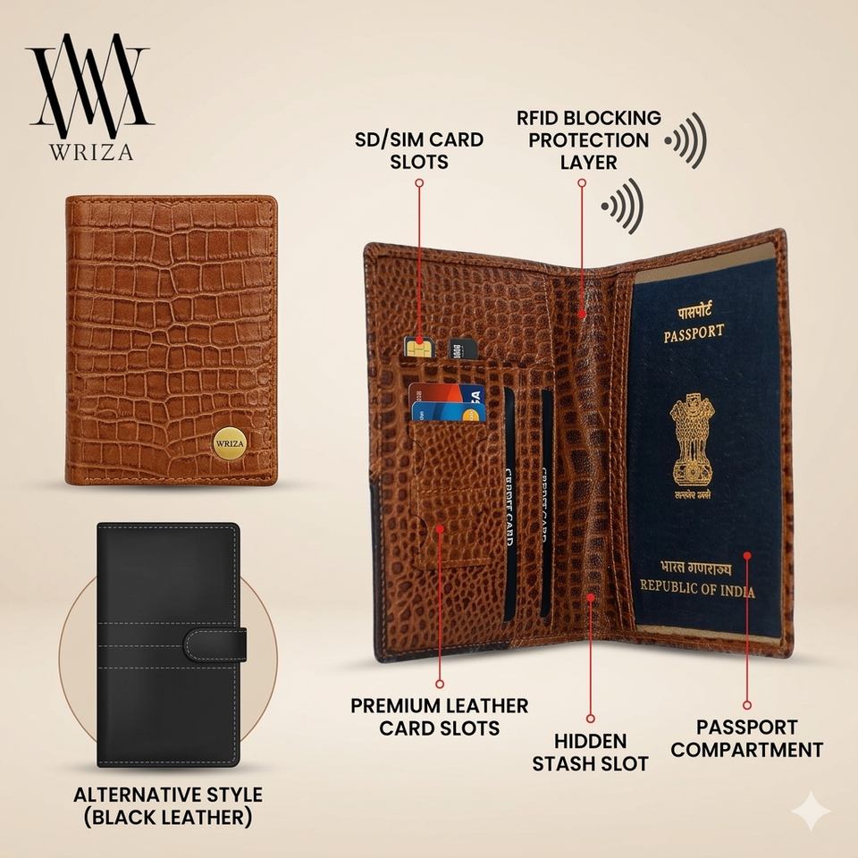 WRIZA กระเป๋าใส่หนังสือเดินทางหนังแท้ RFID ปิดด้วยซิปอเนกประสงค์สำหรับเดินทาง ช่องใส่บัตร ช่องใส่บัตรประจำตัว ช่องใส่เงินสด สำหรับผู้ชาย