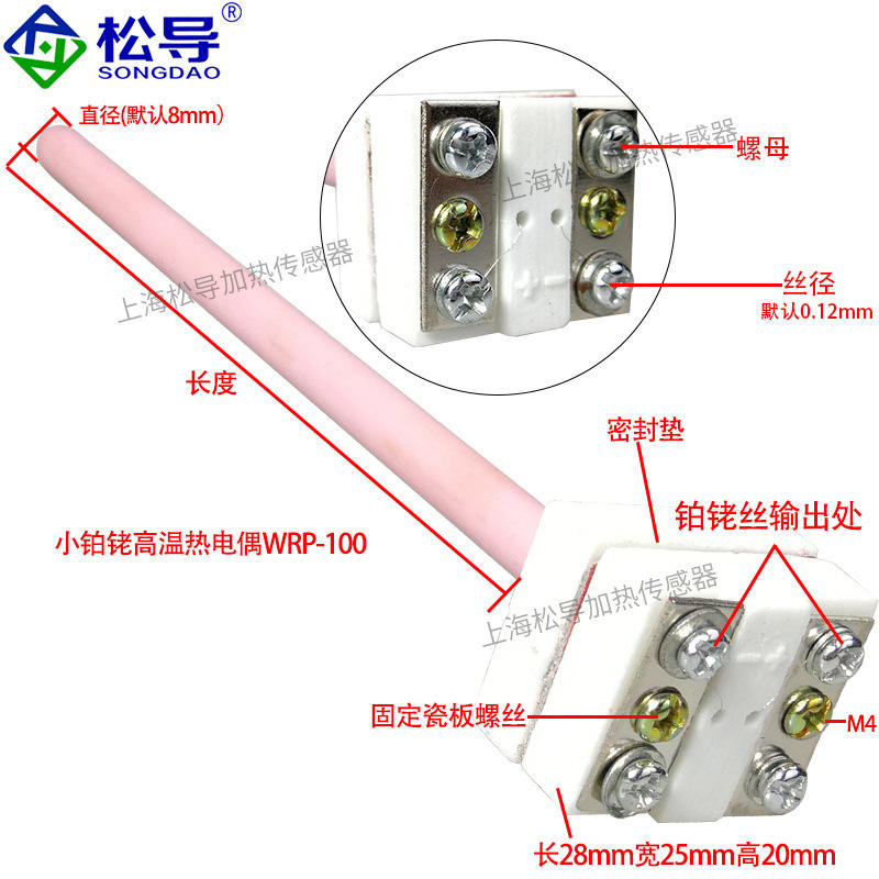 เทอร์โมคัปเปิลแพลตตินัม-โรเดียมขนาดเล็ก รุ่น WRP-100 แบบ S/B ลวดแพลตตินัมแบบไล่ระดับ ทนความร้อนสูง ผลิตจากคอรันดัม 99%