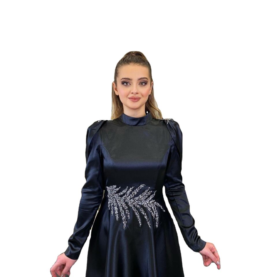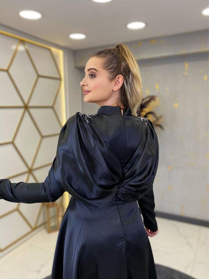 WS ชุดเดรสผ้าไหมซาตินสีดำสำหรับผู้หญิงชุดเดรสอาบายาพร้อมหินคริสตัลสำหรับชุดราตรีงานแต่งงานแบบสุภาพชุดกลางคืน