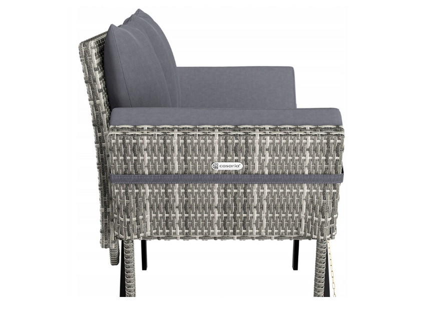 Poweder-coated steel frame + PE rattan + Cushion + Fabricวัสดุ
