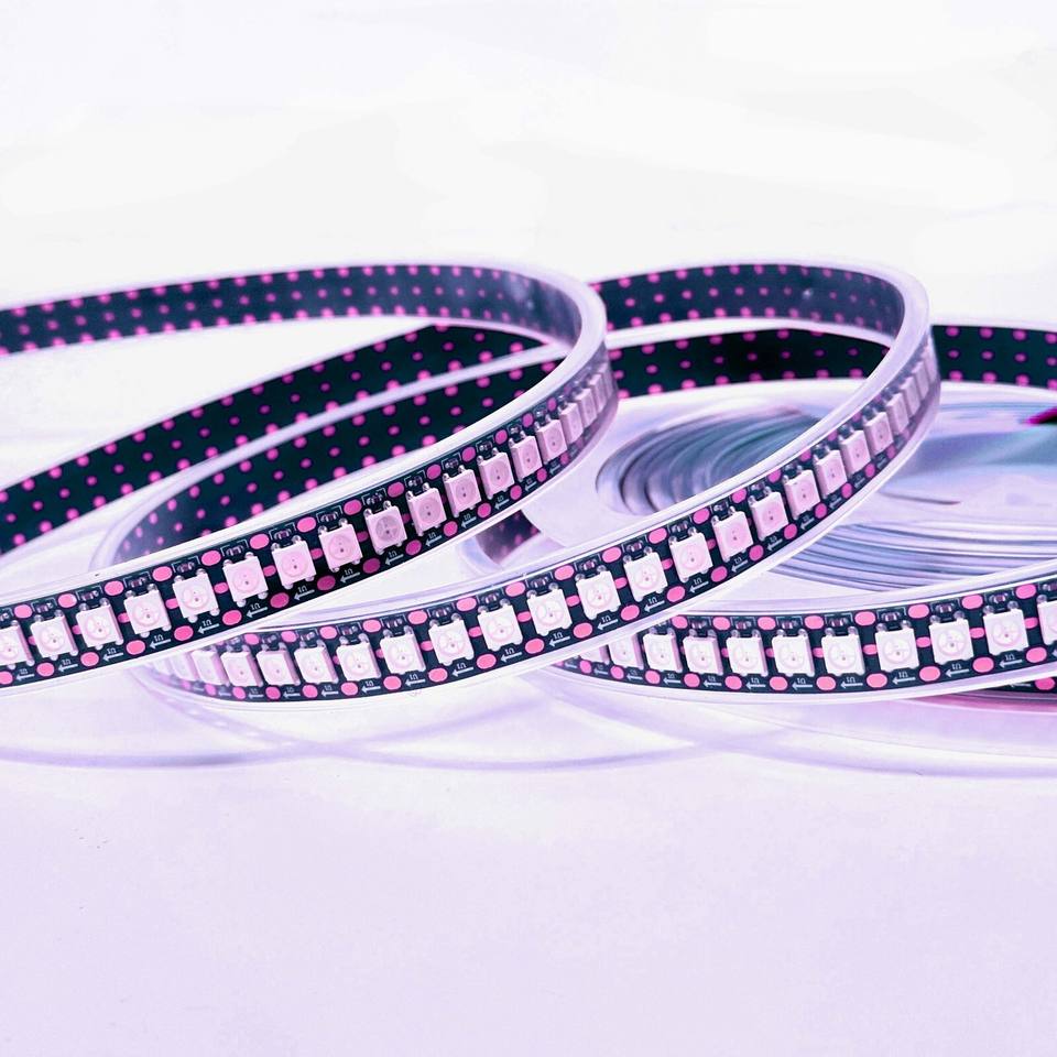 ไฟ LED แบบเส้น WS2812B กว้าง 8 มม. แสง RGB แบบแคบพิเศษ 5V ไฟเส้นแบบกำหนดแอดเดรสได้ ยาว 16.4 ฟุต 144 หลอด LED โปรแกรมได้ ไฟเส้นดิจิตอลแบบพิกเซล
