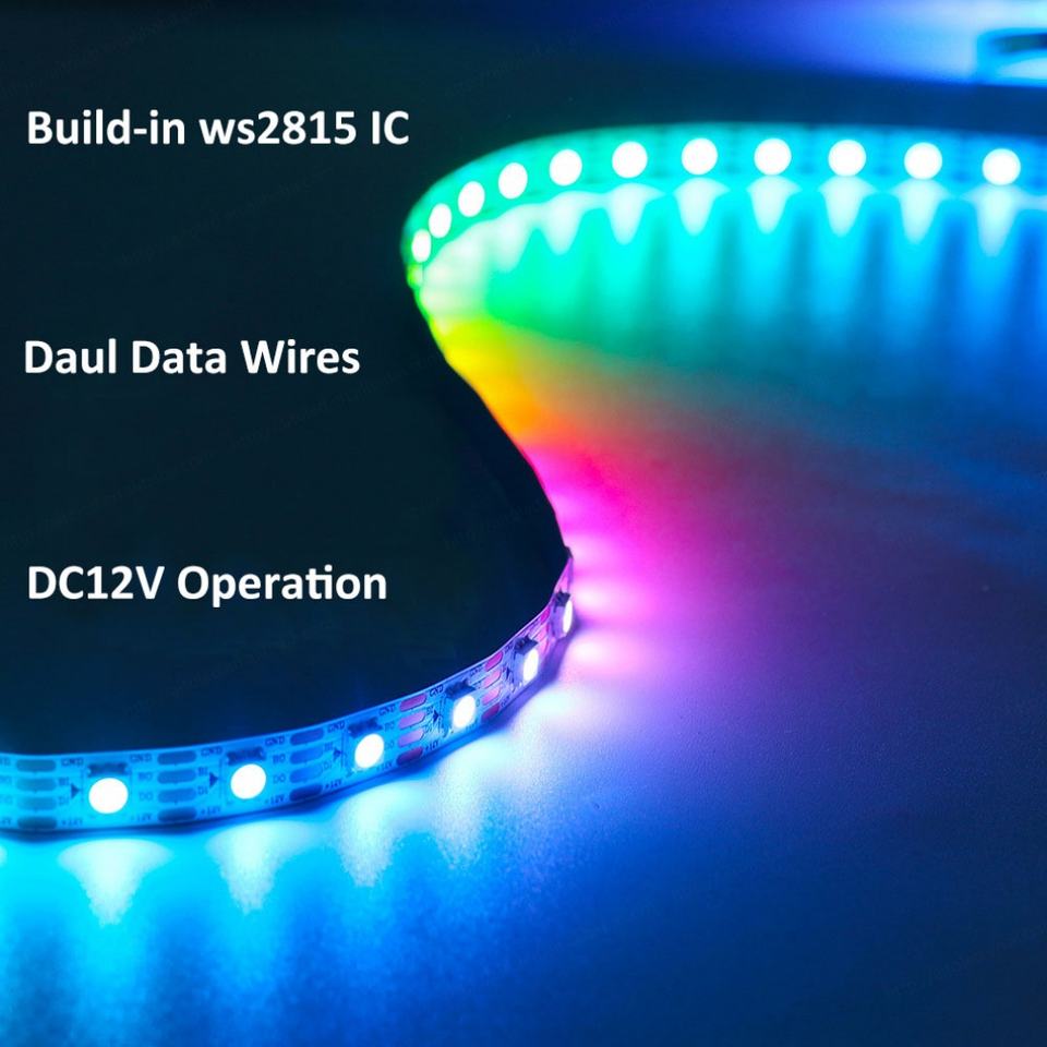 ไฟ LED แบบเส้น WS2815 12V กันน้ำระดับ IP67 สำหรับสวน พร้อม SMD5050 60 ดวงต่อเมตร และ 144 พิกเซลต่อเมตร ปรับความสว่างได้