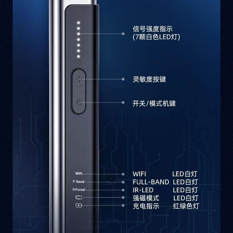 WT16 เครื่องตรวจจับกล้องแอบถ่าย 1MHz-6.5G เครื่องตรวจสอบสัญญาณไร้สายสำหรับอุปกรณ์รักษาความปลอดภัยในโรงแรม