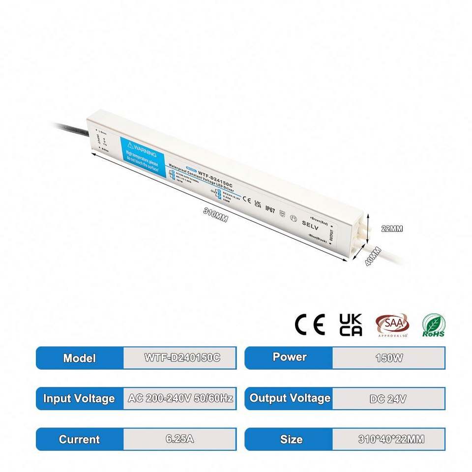 WTF-D12036A ไดรเวอร์ LED 25W 30W 36W 45W 60W 80W 100W 150W 200W 250W 300W 12V 24V พร้อมตัวขับ LED IP67กันน้ำแหล่งจ่ายไฟ LED