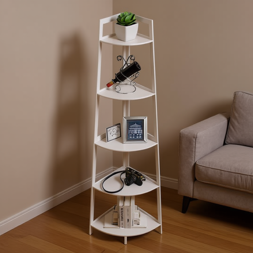 WTZ 70-Inch Tall Bamboo 5-Tier Corner Ladder Shelf Industrial Bookcase For Living Room Home Office Display Storage Rack