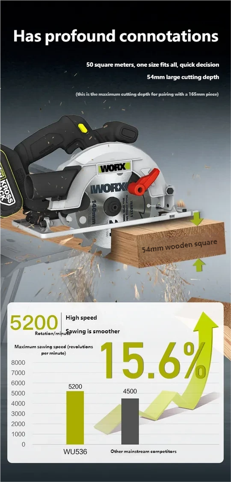 เลื่อยวงเดือนไฟฟ้า WU536 แบบใช้แบตเตอรี่ลิเธียม สำหรับงานไม้ เครื่องเลื่อยไฟฟ้าแบบมือถือ เครื่องตัดหินอ่อน เลื่อยวงเดือน