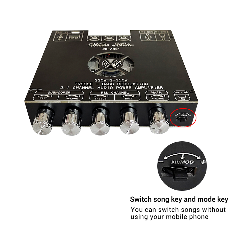 WUZHI AUDIO ZK-AS21 บอร์ดแอมป์ลำโพง 2.1 ช่อง สัญญาณเสียง TPA3255 โมดูลเสียง เบสแหลม ซับวูฟเฟอร์ 220W X2 + 350W รองรับแอปพลิเคชัน