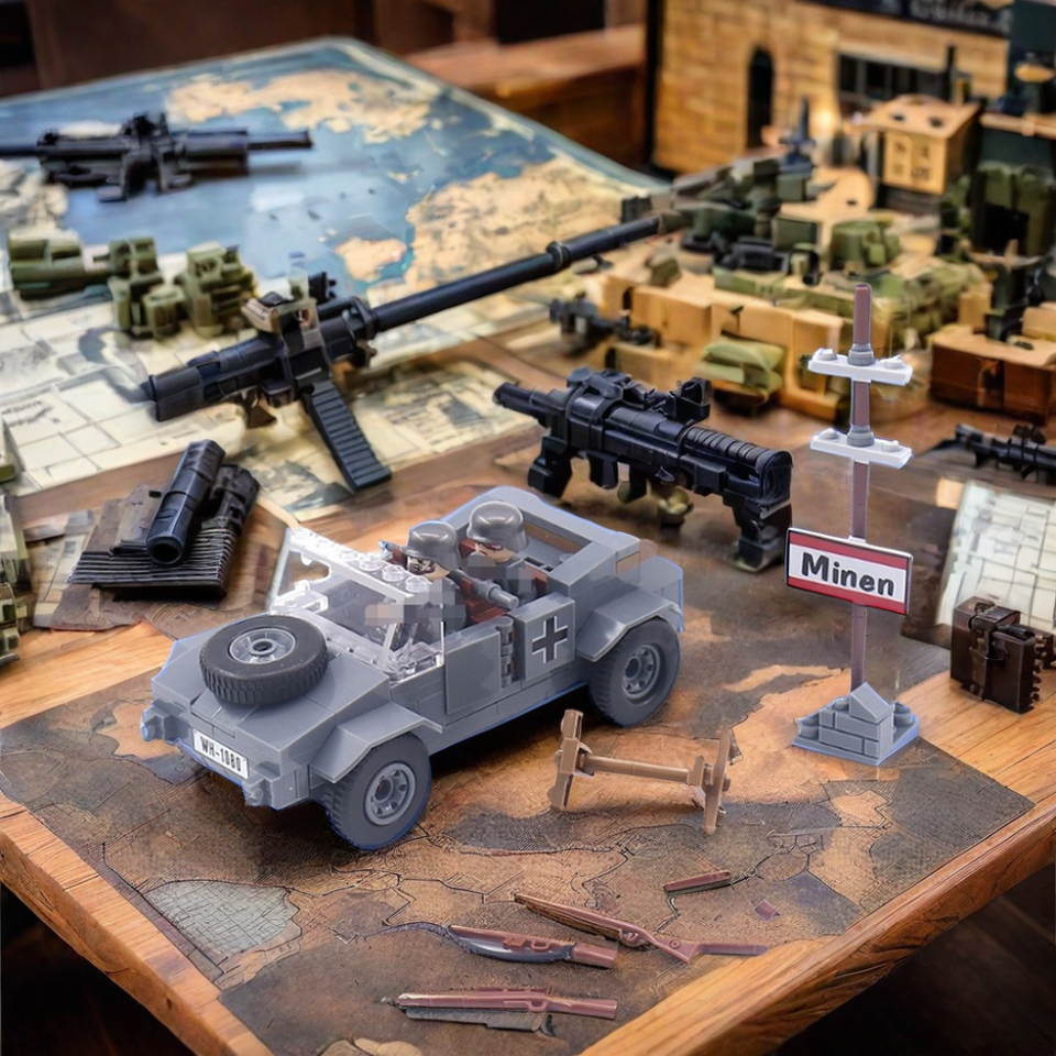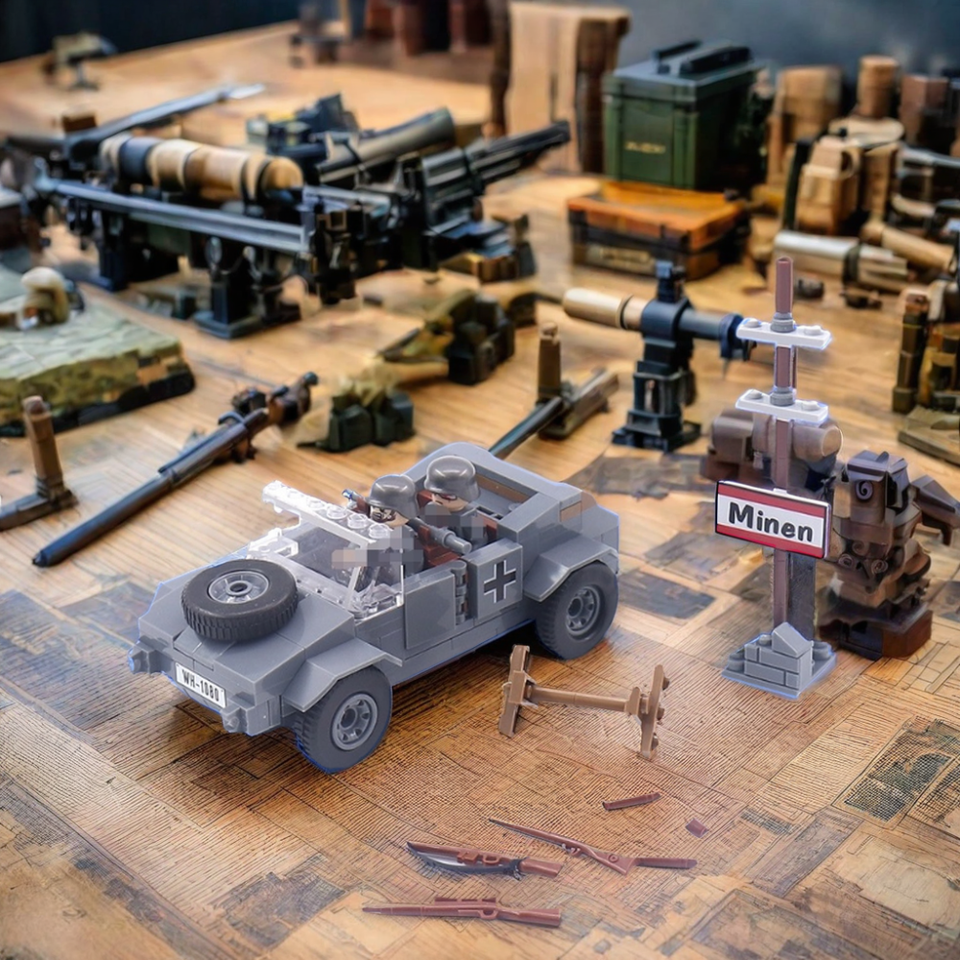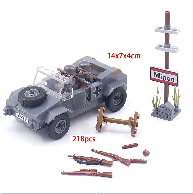 ชุดตัวต่อแบบจำลองอาวุธทหารสงครามโลกครั้งที่ 2 ยานพาหนะทหาร ประกอบเอง ของเล่นตัวต่อ พร้อมทหาร 2 นาย