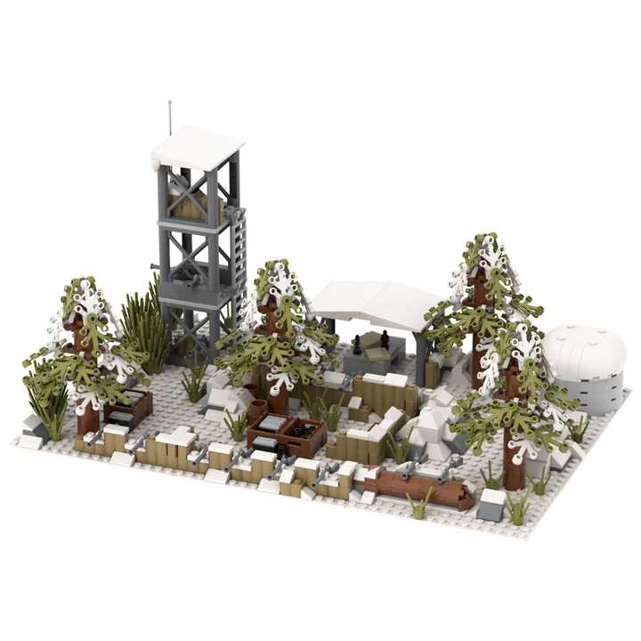 สนามหิมะสงครามโลกครั้งที่ 2 สนามรบทหารยามทาวเวอร์ปืนบังเกอร์ศูนย์บัญชาอุปกรณ์กองทัพฐานป้องกันบ้านบล็อกอาคารชุด