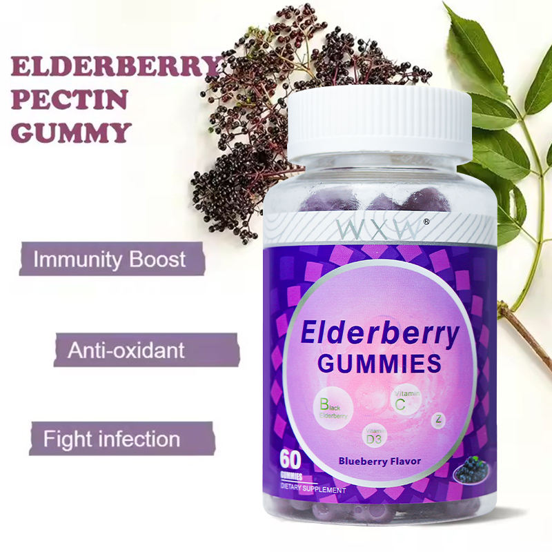 วิตามินกัมมี่เอลเดอร์เบอร์รี่ WXW อาหารเสริมสมุนไพรเอลเดอร์เบอร์รี่ บำรุงภูมิคุ้มกันด้วยวิตามินซีและซี