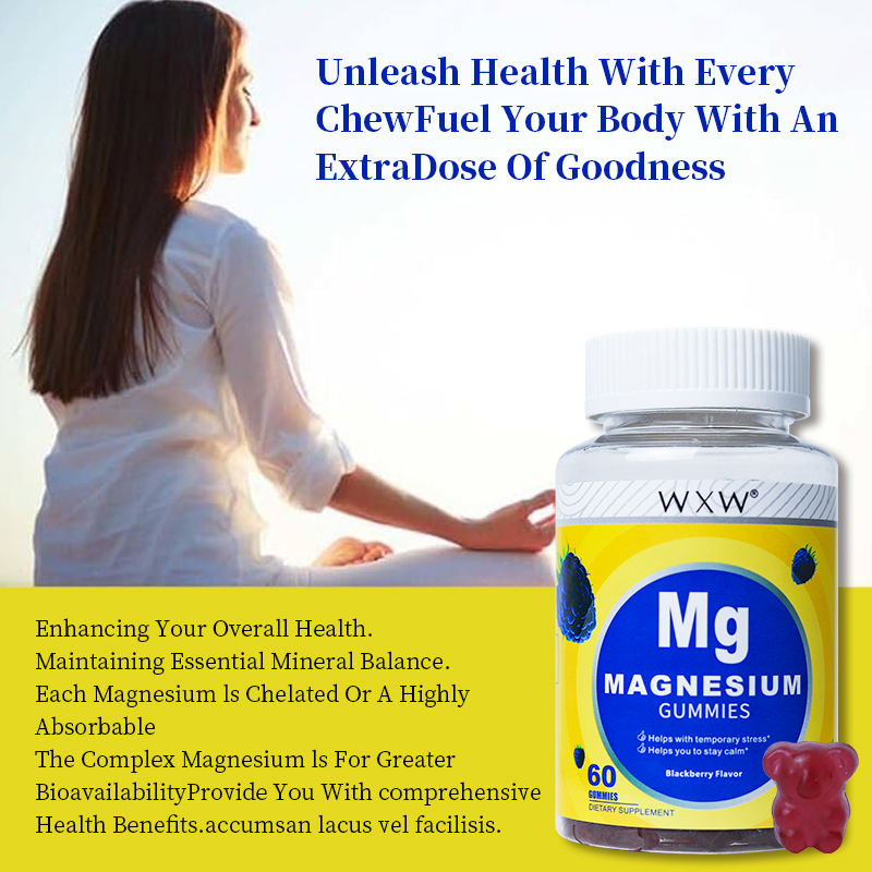 วิตามินแมกนีเซียมซิเตรตแบบกัมมี่ ยี่ห้อ WXW ปราศจากน้ำตาล บรรเทาอาการปวดกล้ามเนื้อ ลดความเครียด สำหรับเด็ก