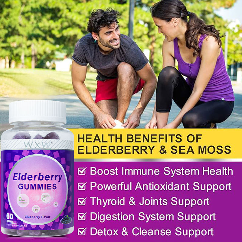 วิตามินกัมมี่ออร์แกนิคเอลเดอร์เบอร์รี่ผสมสาหร่ายทะเล วิตามินซิงค์ และน้ำมันแบล็คซีด เสริมสร้างภูมิคุ้มกันสำหรับผู้ใหญ่และเด็ก