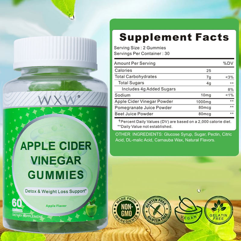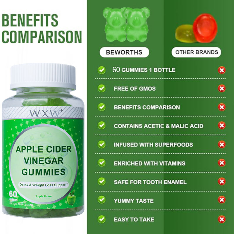 WXW เยลลี่วิตามินแอปเปิ้ลไซเดอร์ปราศจากน้ำตาลสำหรับผู้ใหญ่ส่งเสริมการย่อยอาหาร