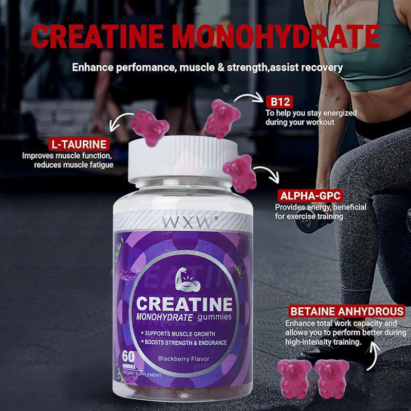 Wxw สต็อก Creatine monhydrate เพิ่มพลังงาน gummies กีฬา Creatine ธรรมชาติ Creatine เติบโตของกล้ามเนื้อแข็งแรง