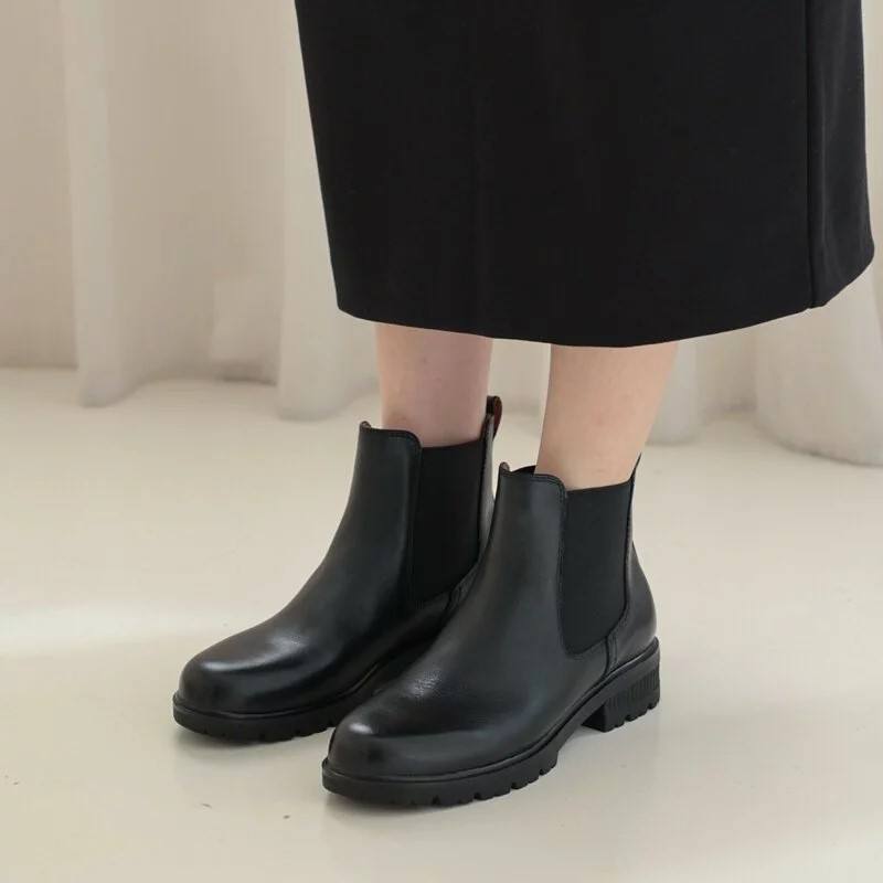 Wypex รองเท้าบูทเชลซีมีสไตล์คลาสสิก, หนังยืดหยุ่นสูงข้อเท้าแฟชั่นกันลื่นเพิ่มความสูง
