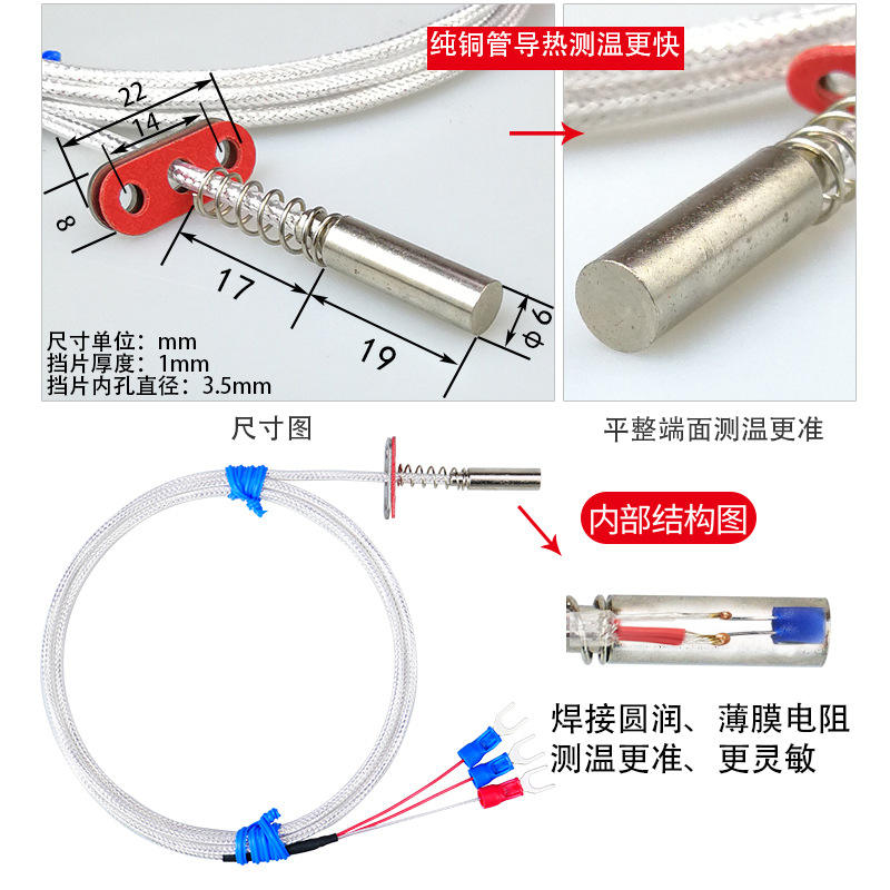 เครื่องตรวจจับอุณหภูมิแบบ end-Face WZPM-201ความต้านทาน (RTD) เซ็นเซอร์วัดอุณหภูมิ Pt100ที่มี PTFE ชุบเงิน