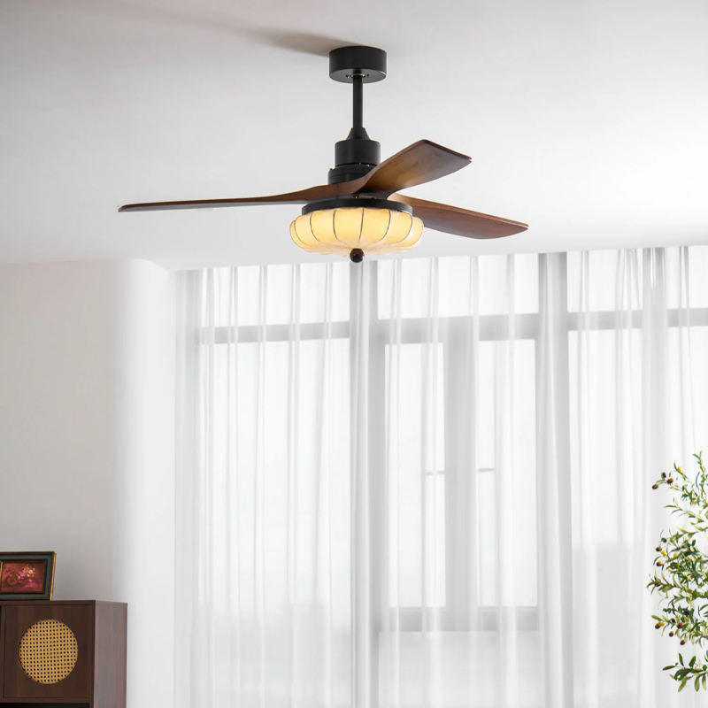 Wabi Sabi โคมไฟเพดานสไตล์จีนย้อนยุคห้องนั่งเล่นห้องรับประทานอาหารบ้านชาห้องนอนไม้เนื้อแข็งโคมไฟผ้าใบมีด