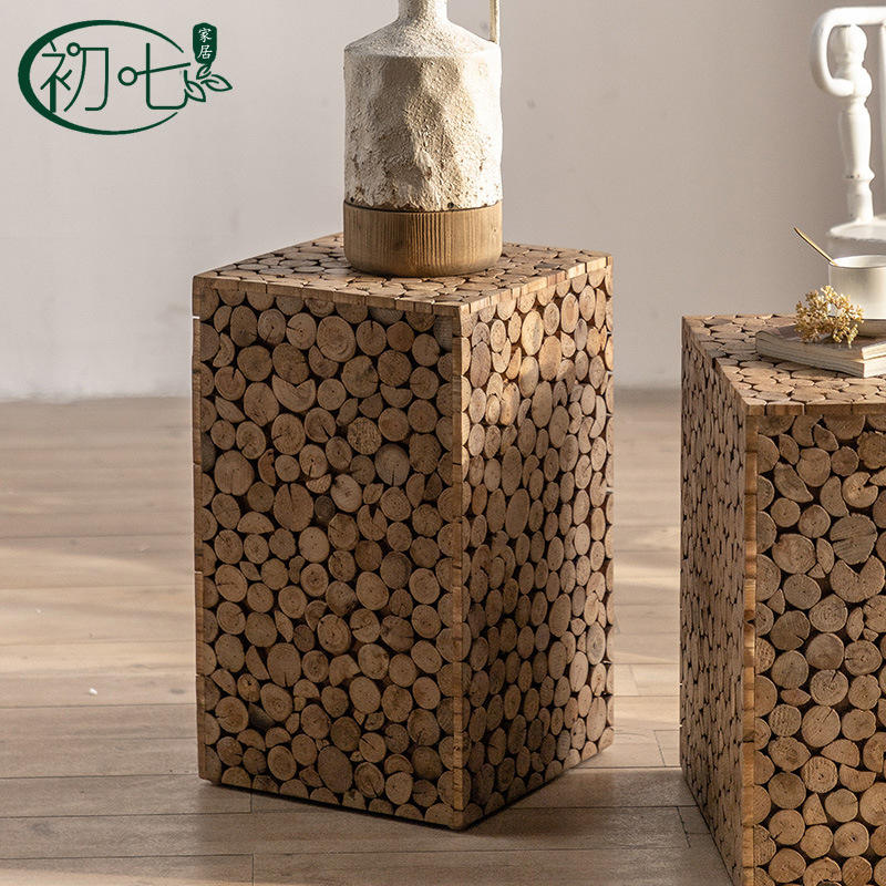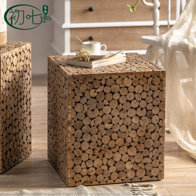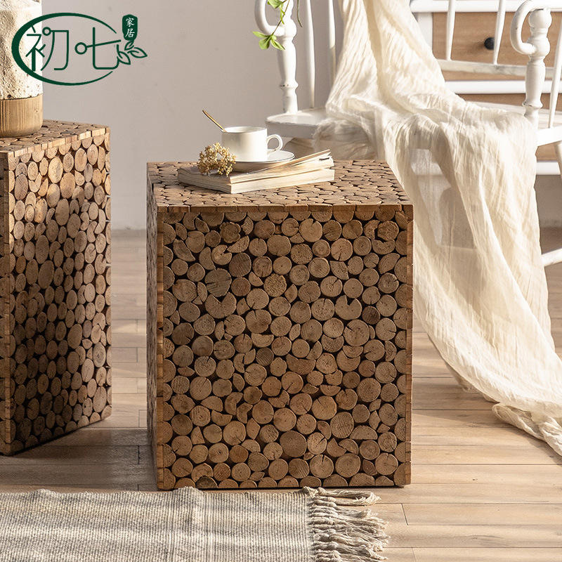 โต๊ะข้างเตียงไม้เนื้อแข็งสไตล์วบิซาบิ งานวินเทจตกแต่งแบบดิสเทรส สำหรับห้องนอนหรือระเบียง