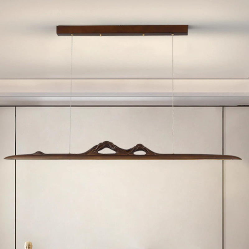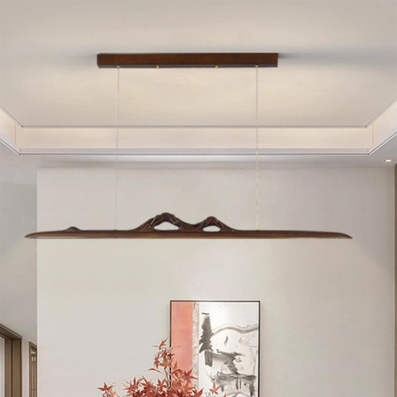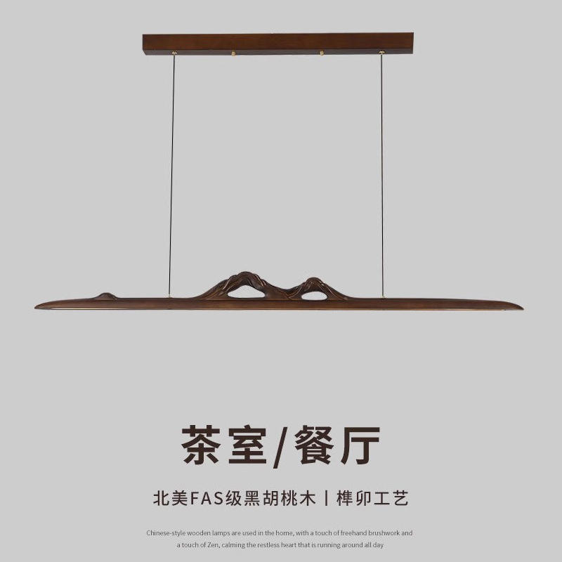 โคมไฟระย้า LED สไตล์วาบิซาบิ แรงบันดาลใจจากเซน ทำจากไม้วอลนัทดำอเมริกาเหนือและทองแดง เหมาะสำหรับห้องน้ำชาและห้องรับประทานอาหาร