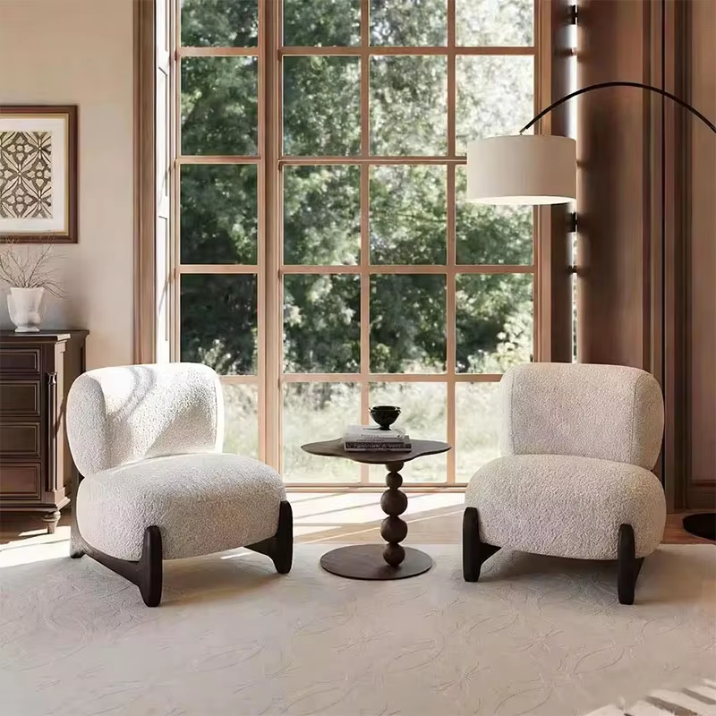 Wabi-Sabi Style Single Sofa Luxury Premium Balcony Lounge Chair Living Room Solid Wood Resting Area Trending Homestay