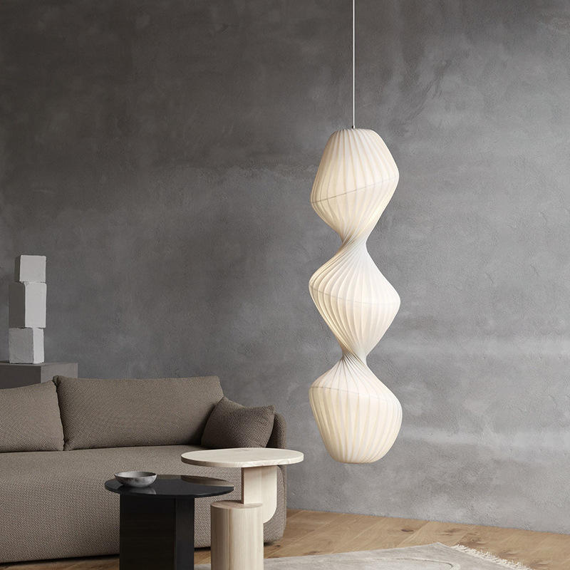 โคมไฟระย้าสไตล์วบิซาบิ ดีไซน์เนอร์งานศิลปะ โคมไฟผ้าสำหรับบันได โคมไฟห้อยยาว สำหรับห้องนั่งเล่น/ห้องรับประทานอาหาร อพาร์ตเมนต์แบบดูเพล็กซ์