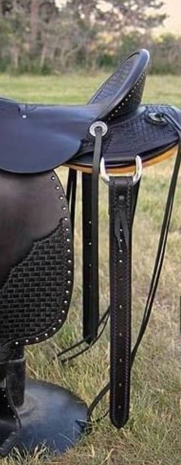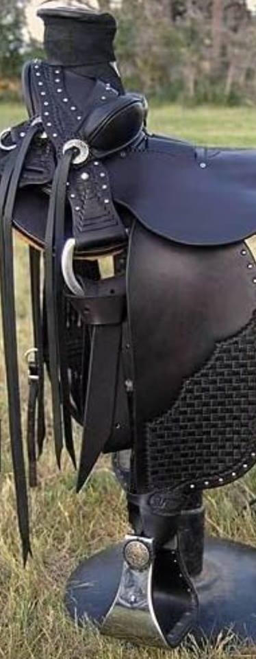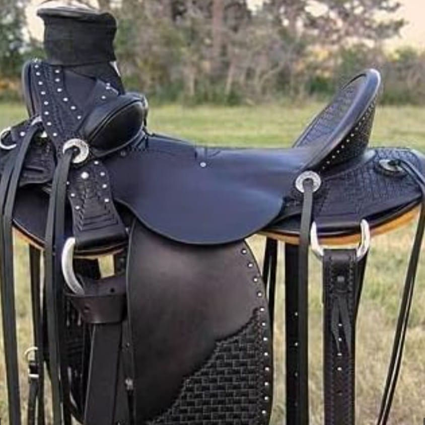 อานม้าหนังแท้แบบตะวันตก Wade Tree a Fork รุ่นพรีเมียม สีดำ ทำจากหนังวัว พร้อมลายออกแบบสำหรับแข่งม้าแบบอังกฤษ จาก India-Ranch Roping Product