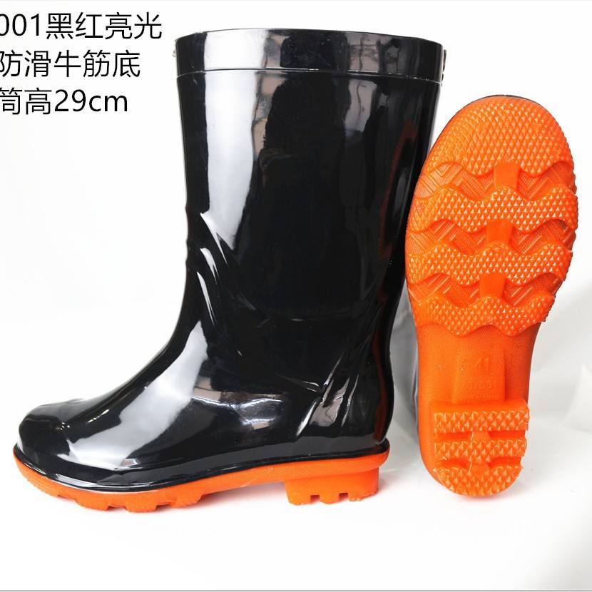 รองเท้าบูทยางกันน้ำสูง 29 ซม. สีดำแดงเงา พื้นยางกันลื่น สำหรับผู้ชาย