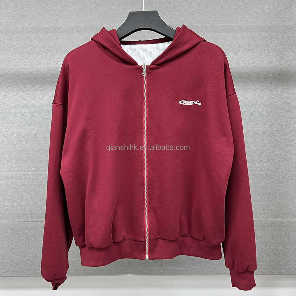 เสื้อฮู้ดแวฟเฟิลกลับได้เสื้อฮู้ด420จีเอสเอ็มวินเทจแบบสวมหัวมีซิปรูดขึ้นจากร้าน Waffle