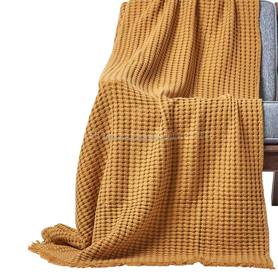 ผ้าห่มเนื้อผ้าวาฟเฟิลสีน้ำตาลผ้าทอเนื้อนุ่มน้ำหนักเบาสำหรับทุกฤดูชุดเครื่องนอนโรงแรมระดับพรีเมียมส่งออกโดยผู้จัดจำหน่าย