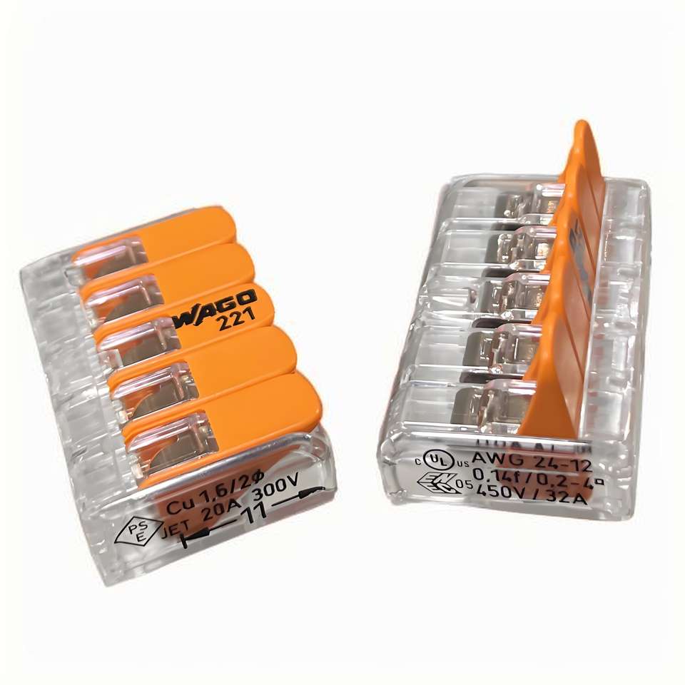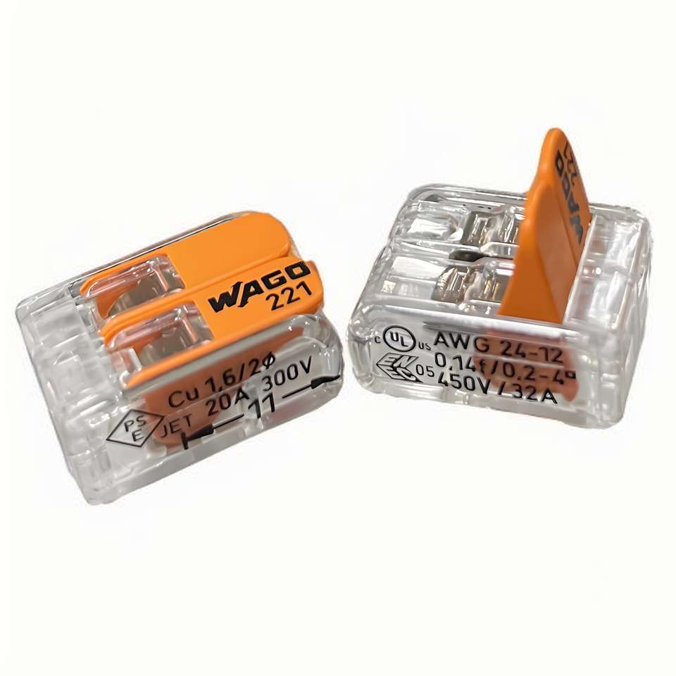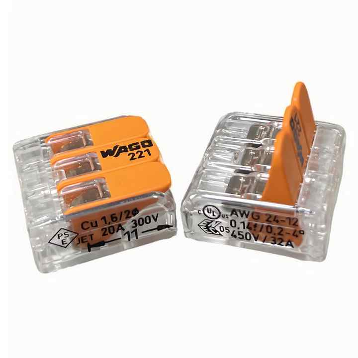 ขั้วต่อสายไฟแบบสปริง Wagos 221-412/413/415 รุ่น 221 ใช้งานง่าย ปลอดภัย และรวดเร็ว ใช้ได้กับสายไฟทั้งแบบอ่อนและแบบแข็ง
