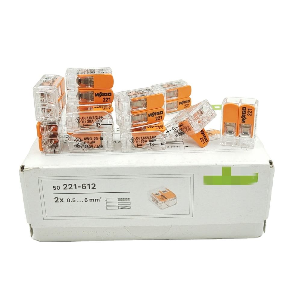 ตัวเชื่อมต่อสายไฟแบบประกบ Wagos 221-612 ขนาด 6 มม.² พร้อมคันโยก 221-612 450V 41A 6 มม. ตัวเชื่อมต่อสายไฟแบบเร็ว 221 612