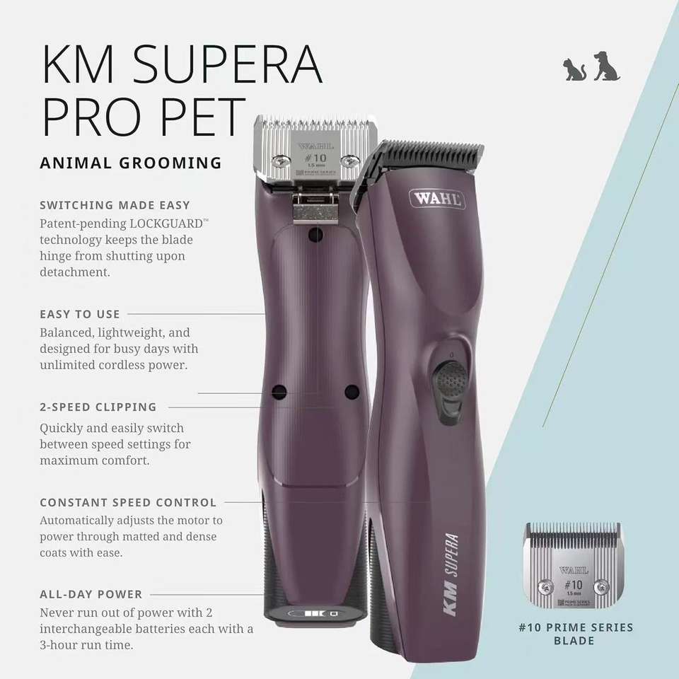Wahl supera ปัตตาเลี่ยนขนสัตว์เลี้ยงมืออาชีพ, ปัตตาเลี่ยนขนสัตว์เลี้ยงแบบไร้สายความเร็ว2ระดับเงียบเครื่องมือดูแลขนแมวสุนัขพร้อมแบตเตอรี่ Li-ion แบบเปลี่ยนได้