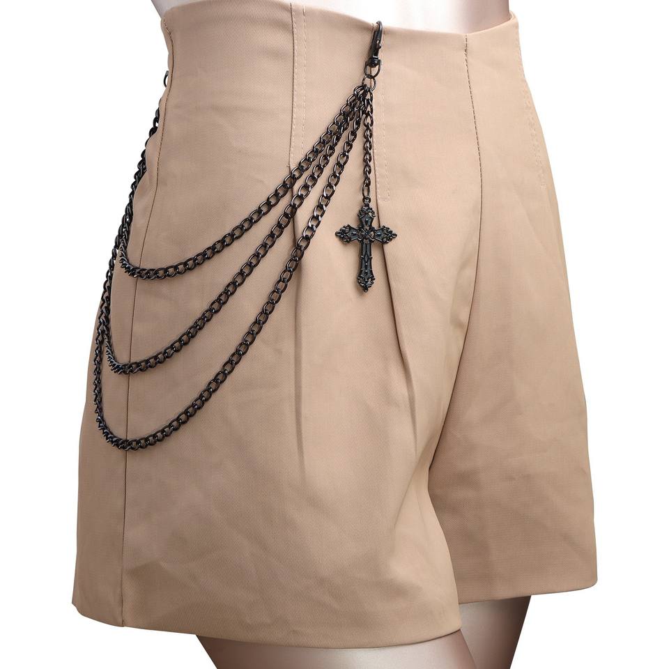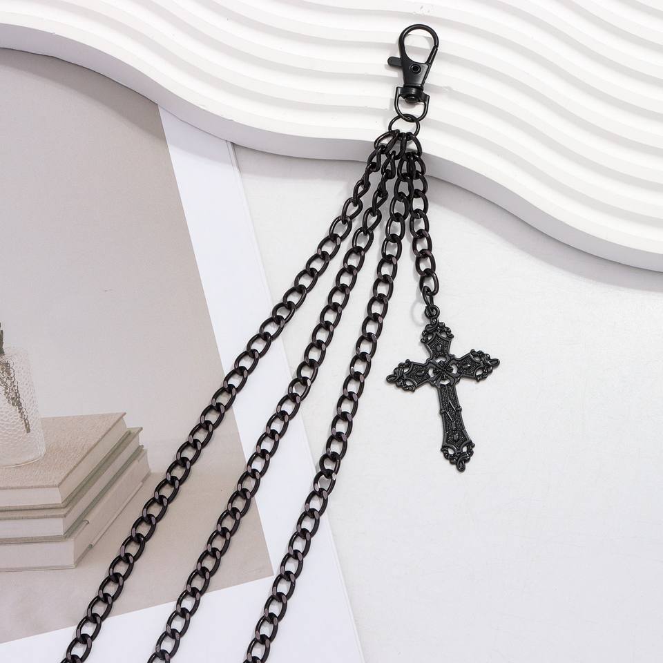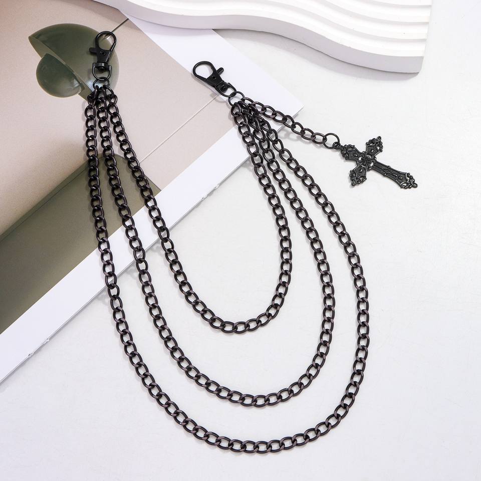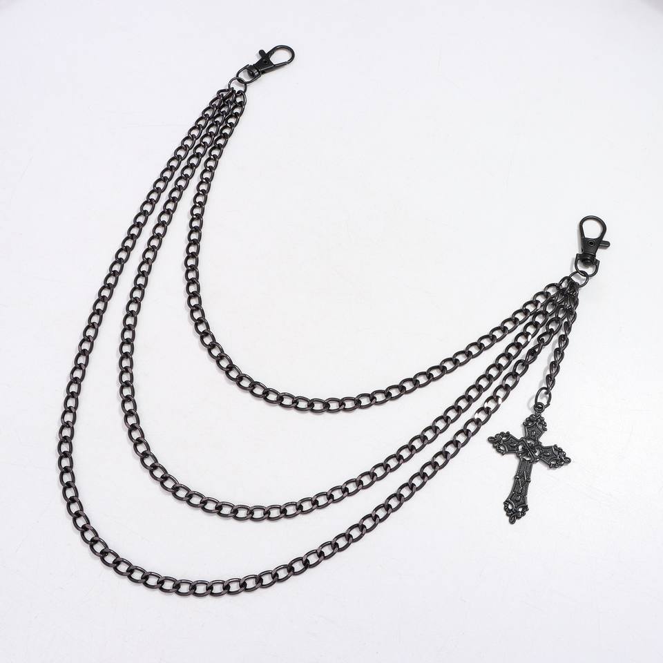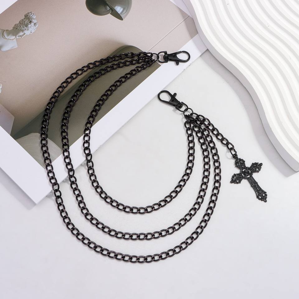 จี้รูปกางเขนแบบโซ่คาดเอว หลายชั้น โลหะผสมสังกะสีสีดำ สไตล์ฮิปฮอป สำหรับใส่ทุกวัน