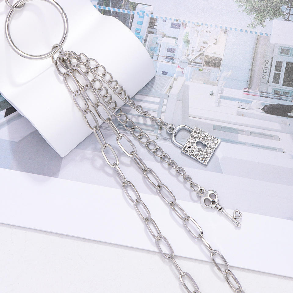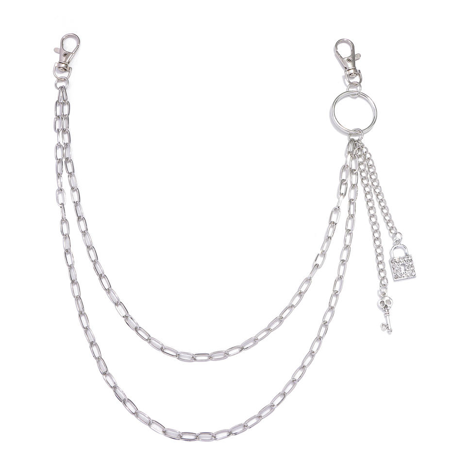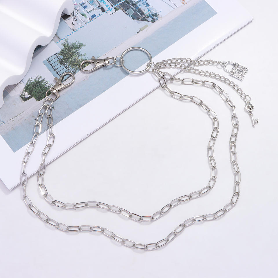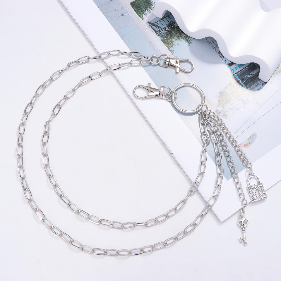 โซ่คาดเอวพร้อมจี้โลหะแบบล็อคสองชั้น สไตล์ฮิปฮอป สำหรับตกแต่งกางเกงยีนส์ เครื่องประดับสำหรับงานปาร์ตี้ ทำจากโลหะผสมสังกะสี สีขาว K