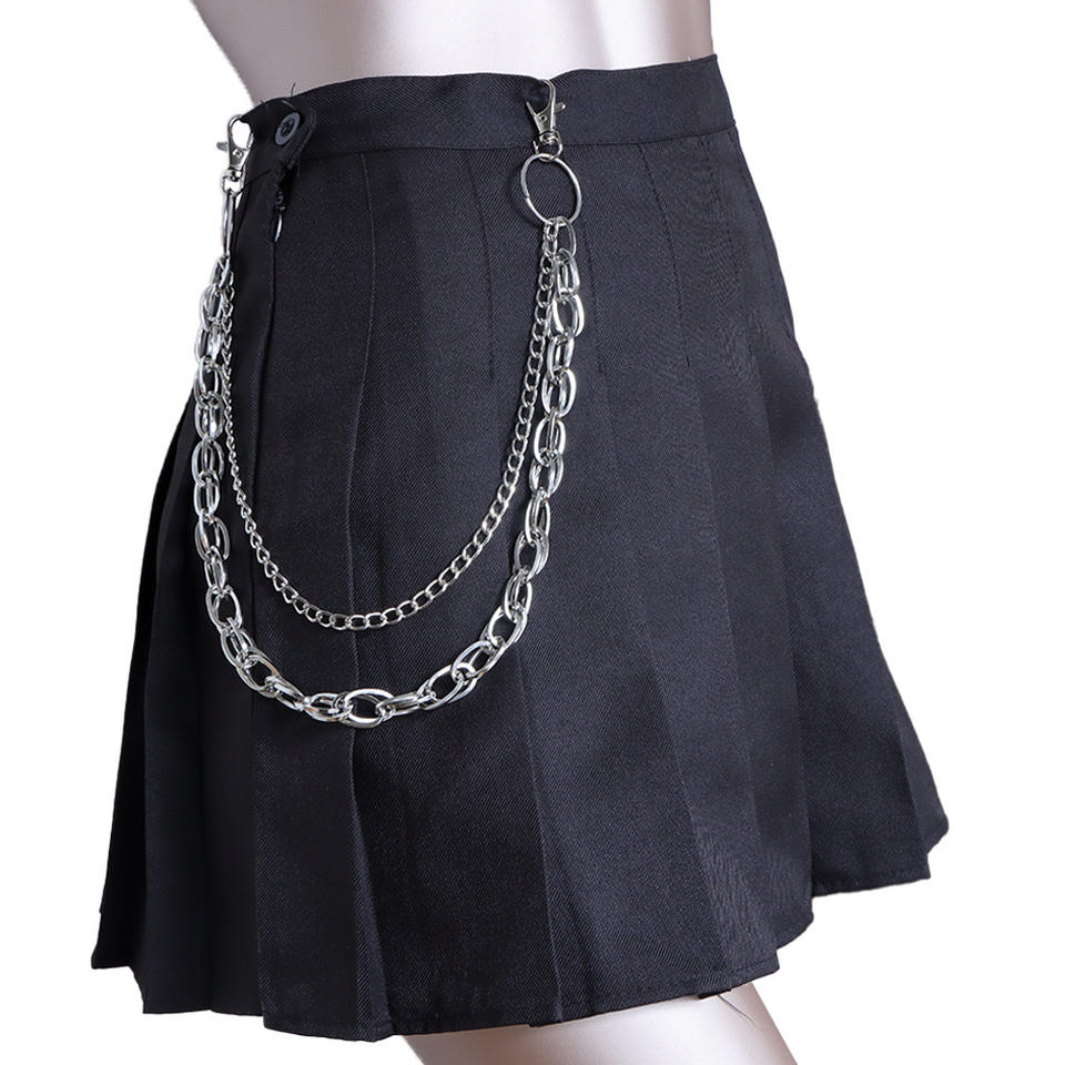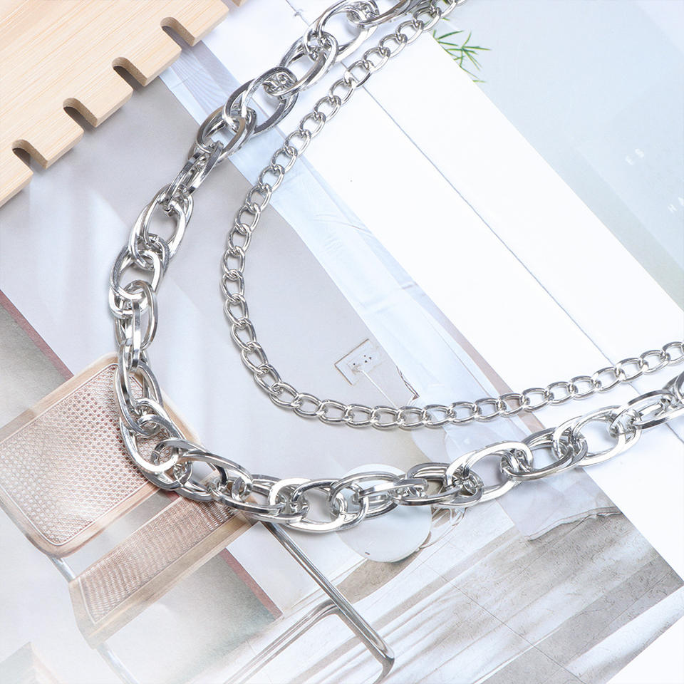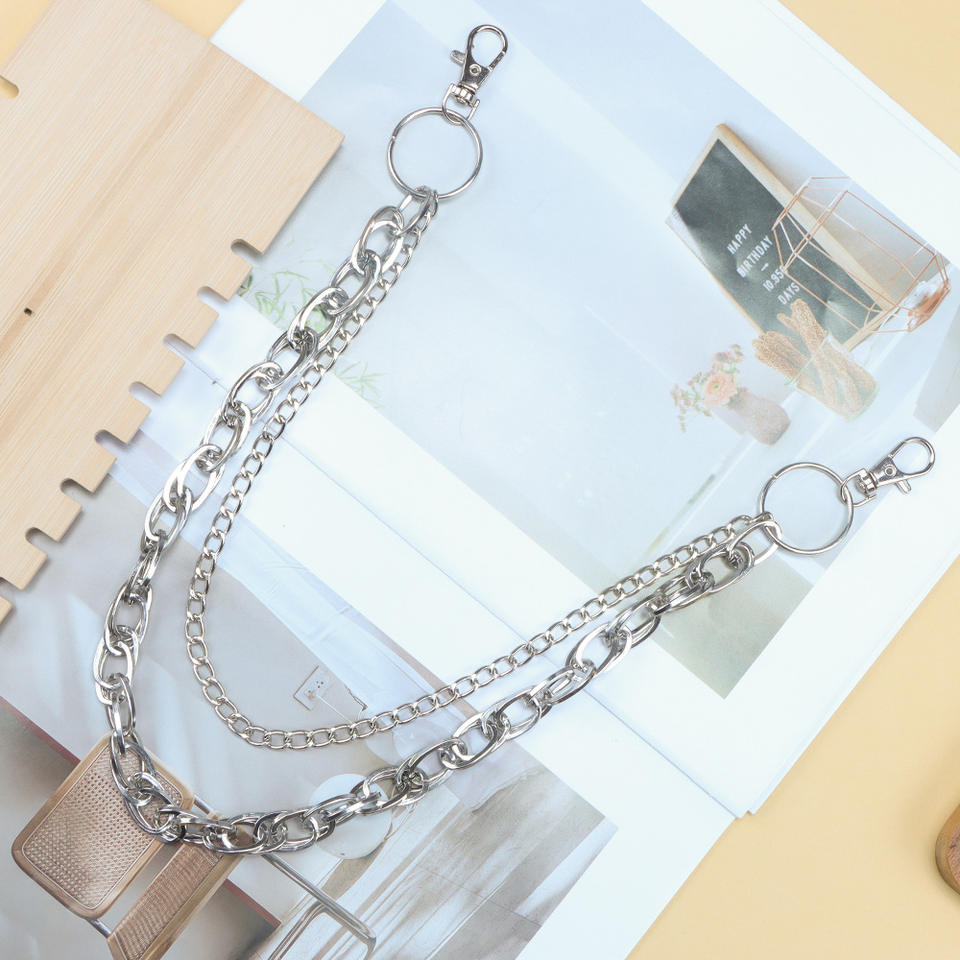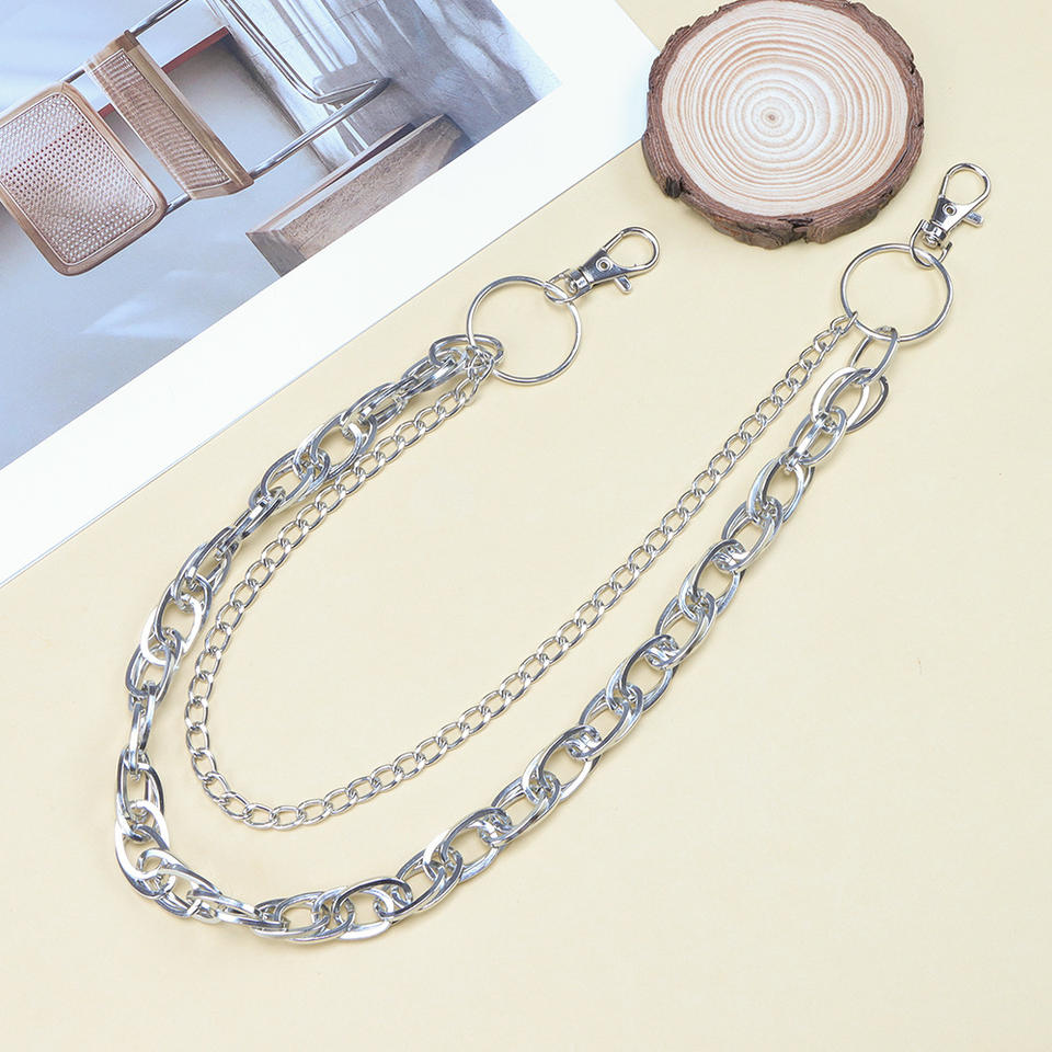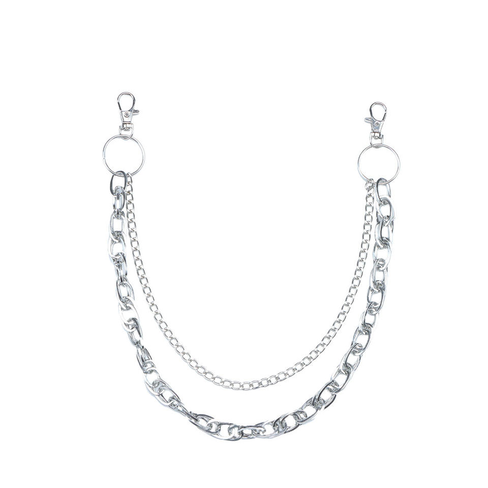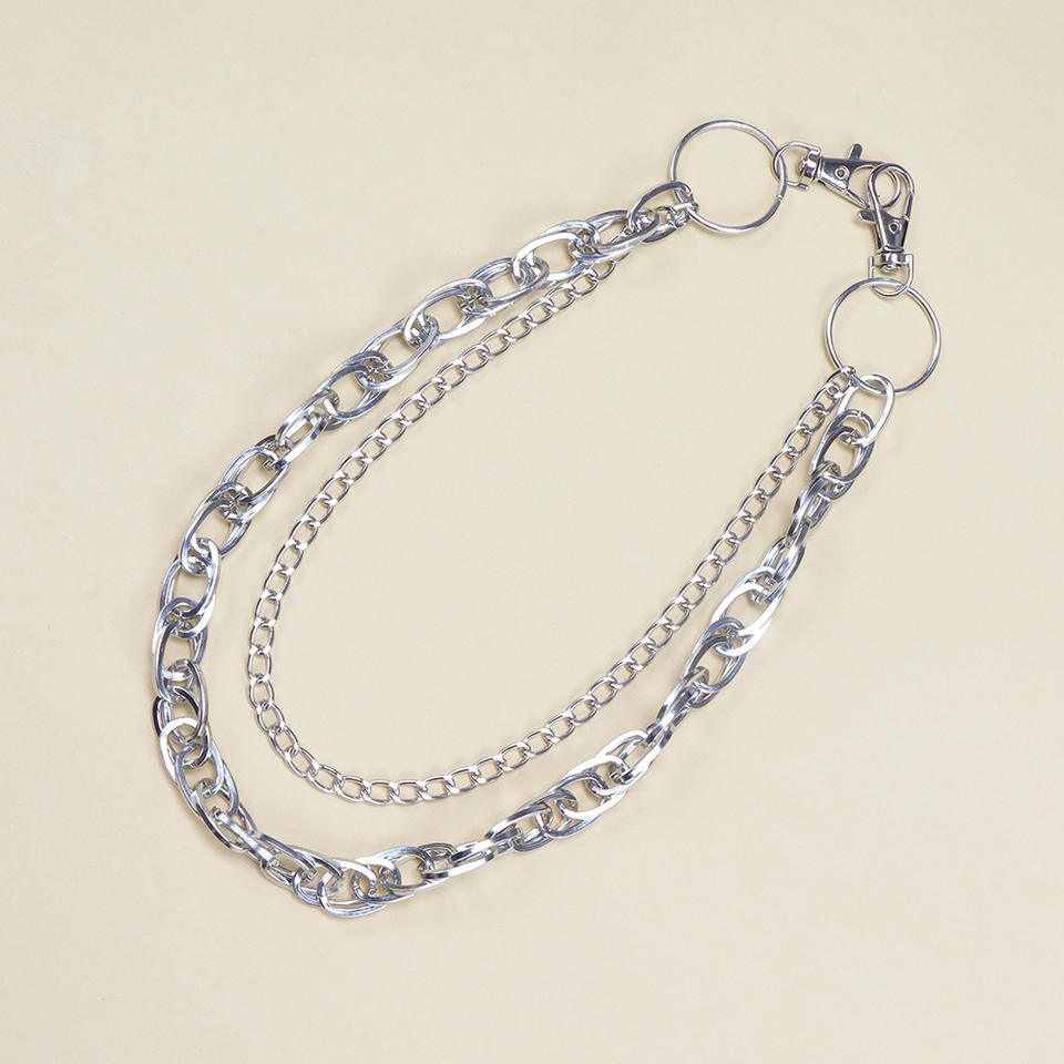 โซ่คาดเอว วงแหวนโลหะหลายชั้น ฮิปฮอป สไตล์พังก์ แฟชั่นลำลอง โซ่คาดเอว โลหะผสมสังกะสี สีขาว K795