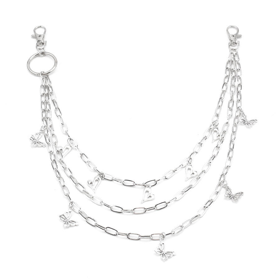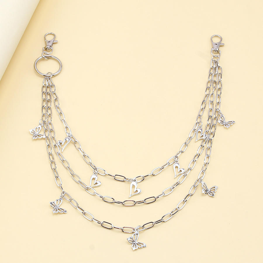 color:Hollowed-out butterfly and heart multi-layered pants chain