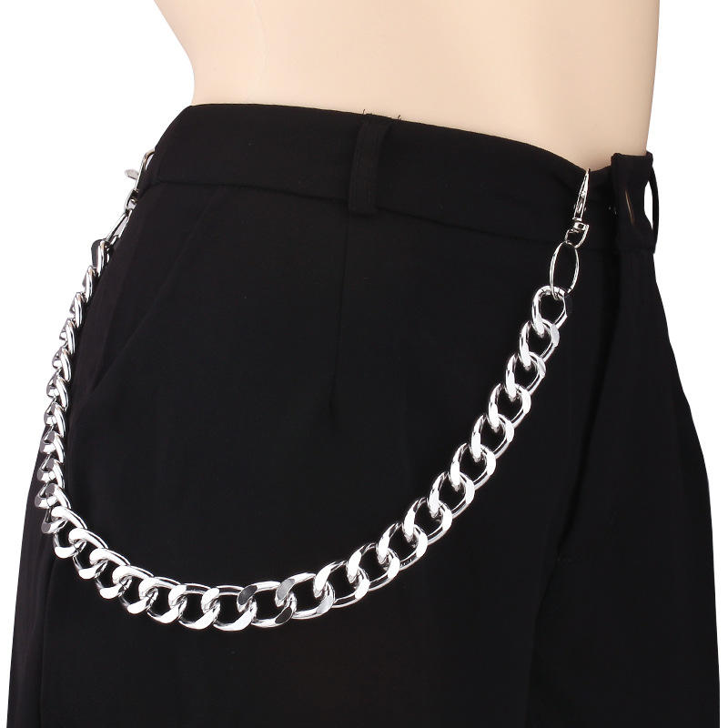 โซ่คาดเอวแบบชั้นเดียว สไตล์ฮิปฮอป โลหะหนา โซ่คล้องกางเกง ทำจากโลหะผสมสังกะสี สำหรับใส่ทุกวัน โซ่แฟชั่นสำหรับร่างกาย